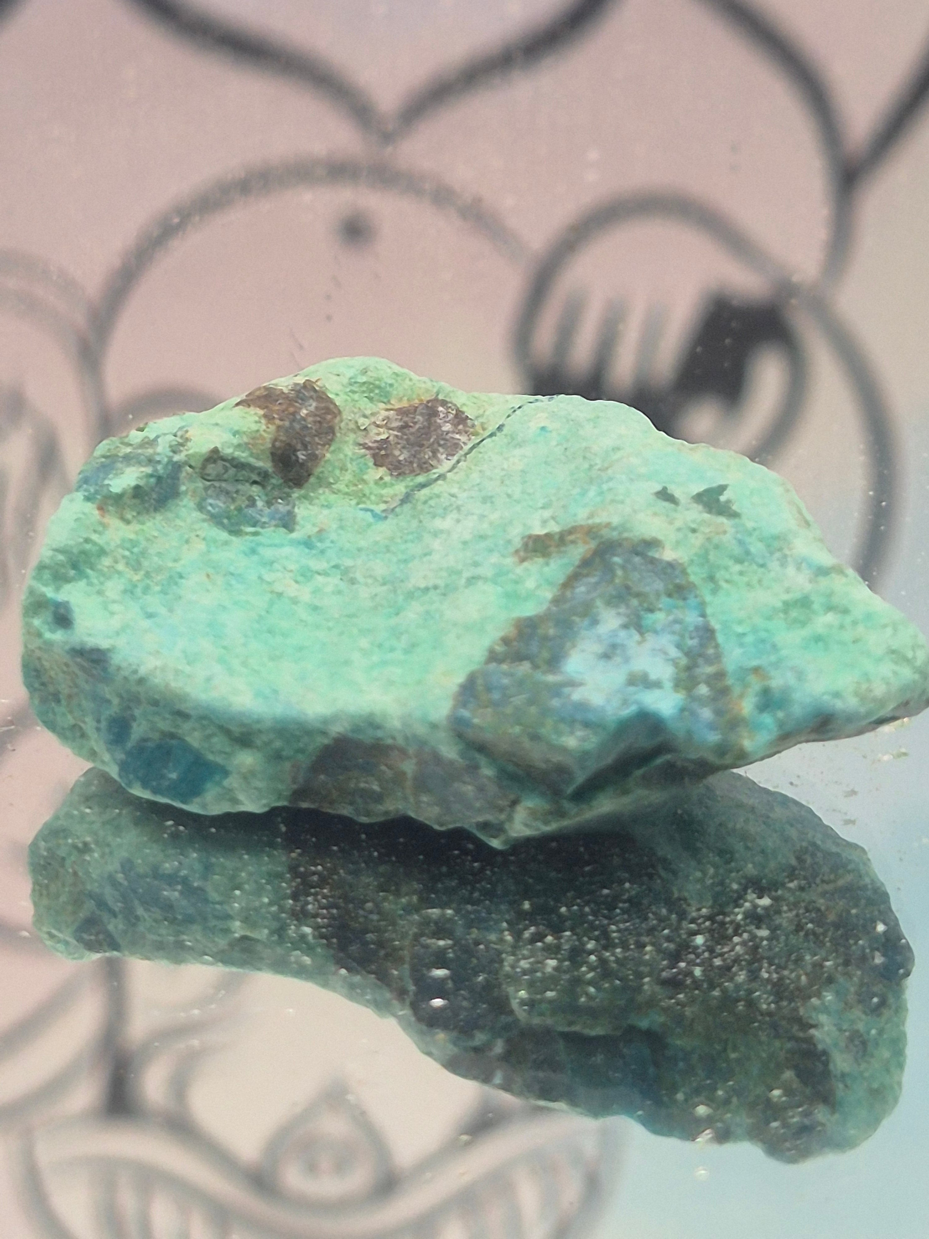 CRISOCOLA O PIEDRA DEL PERDÓN Propiedades: - calma la mente - promueve la paz interior -neutraliza energías negativas - fomenta el perdón - fortalece lazos emocionales...