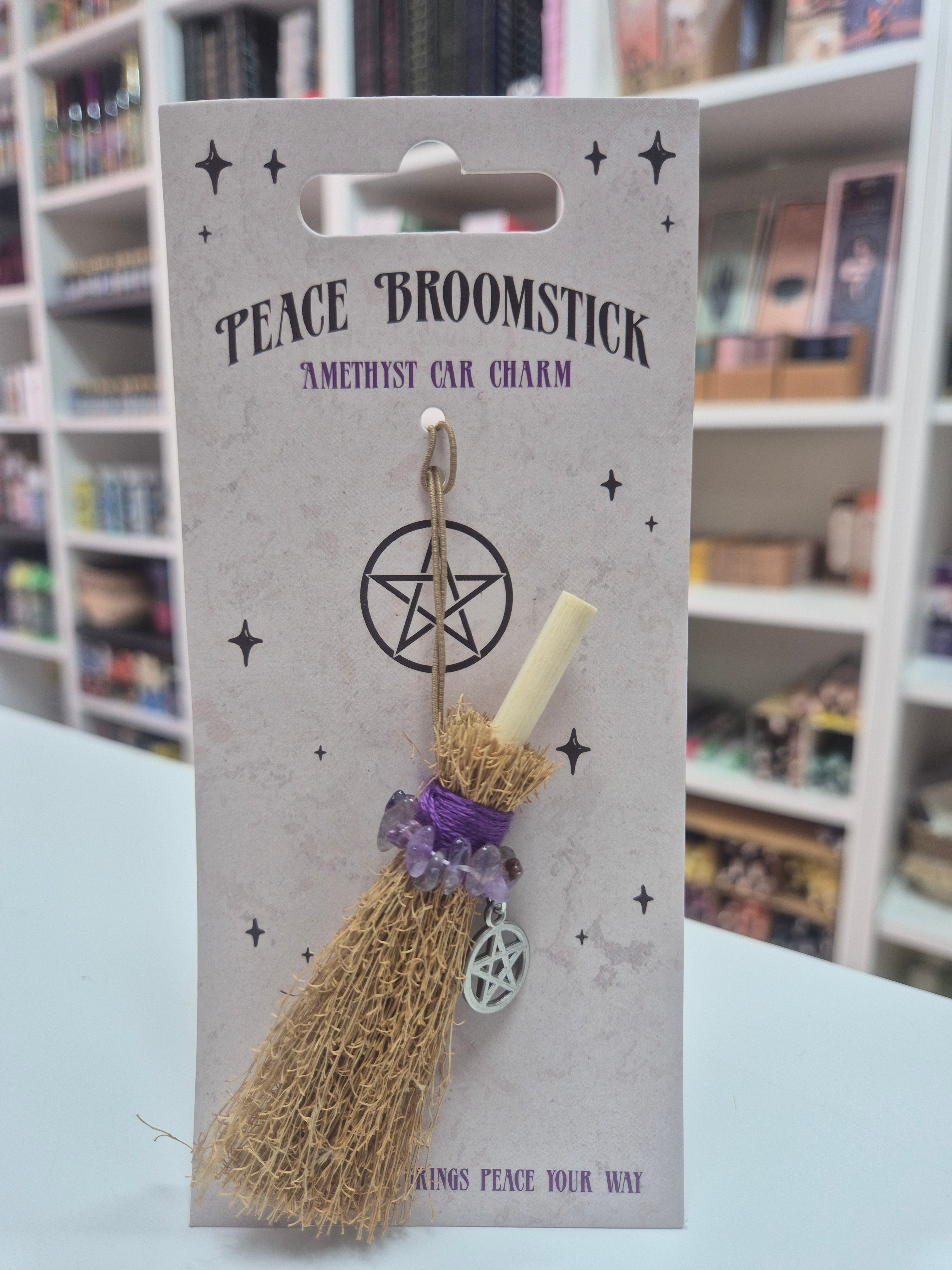 Mini escobitas esotéricas con cristales-Amuletos para el coche
