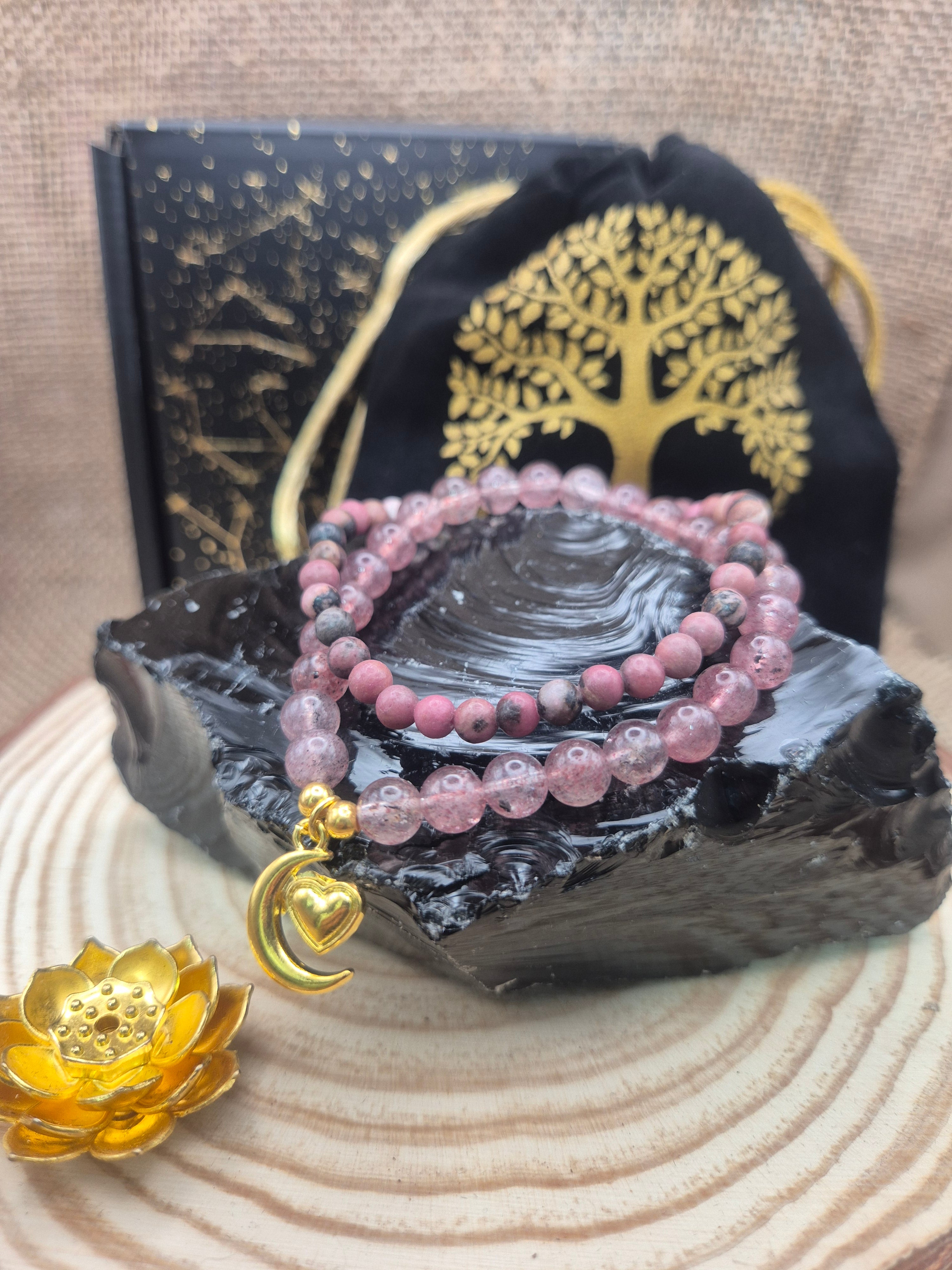 Pack Afrodita (cuarzo Fresa + rodonita) para el amor