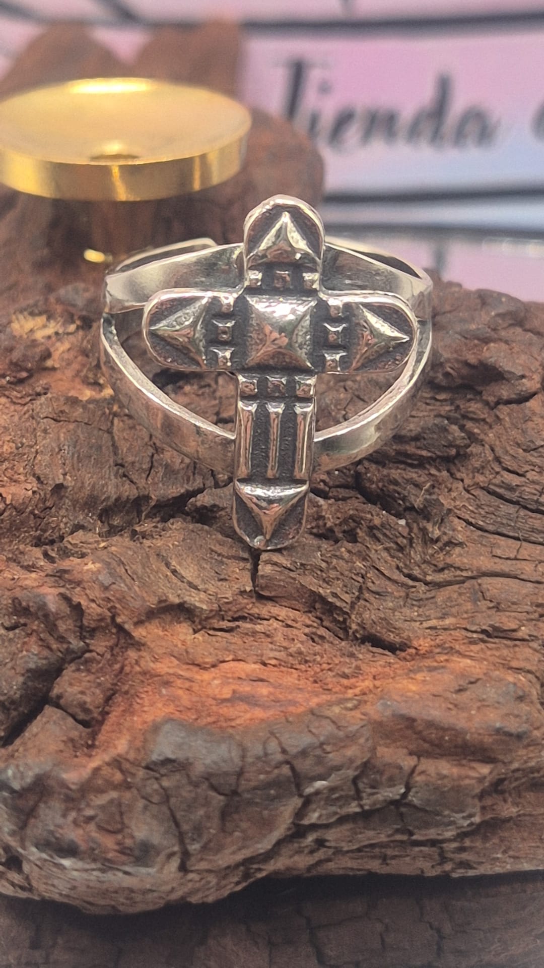 ANILLO CRUZ ATLANTE AJUSTABLE PLATA 925 Es un escudo energético, capaz de proteger a quien la lleva de energías negativas y malas influencias. Los símbolos geométricos...