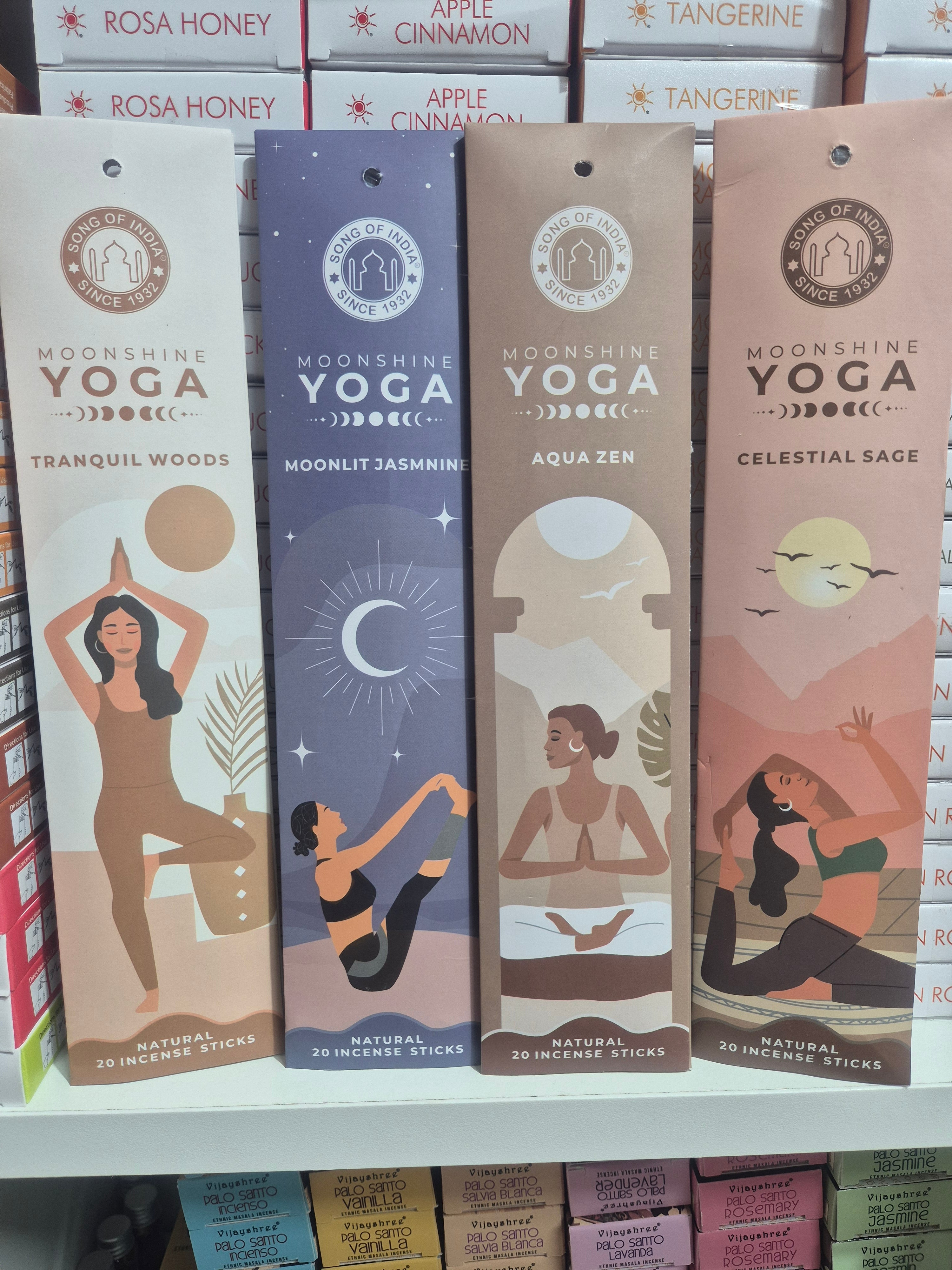 Pack Varitas Incienso Yoga moonshine - 22grs (4 cajas diferentes ) indio.