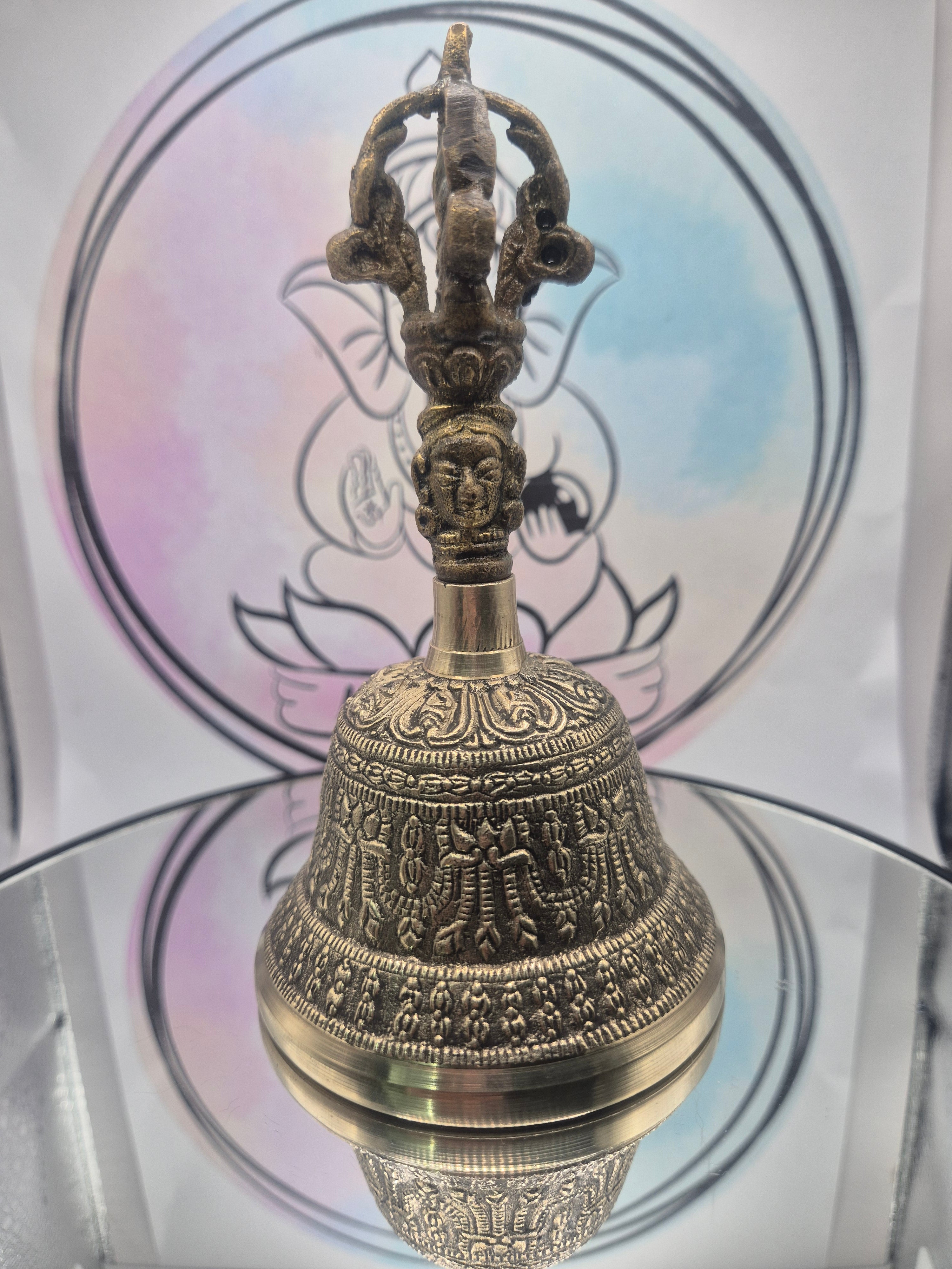 CAMPANA TIBETANA GRANDE 10 CM Campana budista tibetana, con dorje (vajra) incluido. Las campanas son utilizadas por los monjes budistas en rituales y ceremonias mientras recitan...