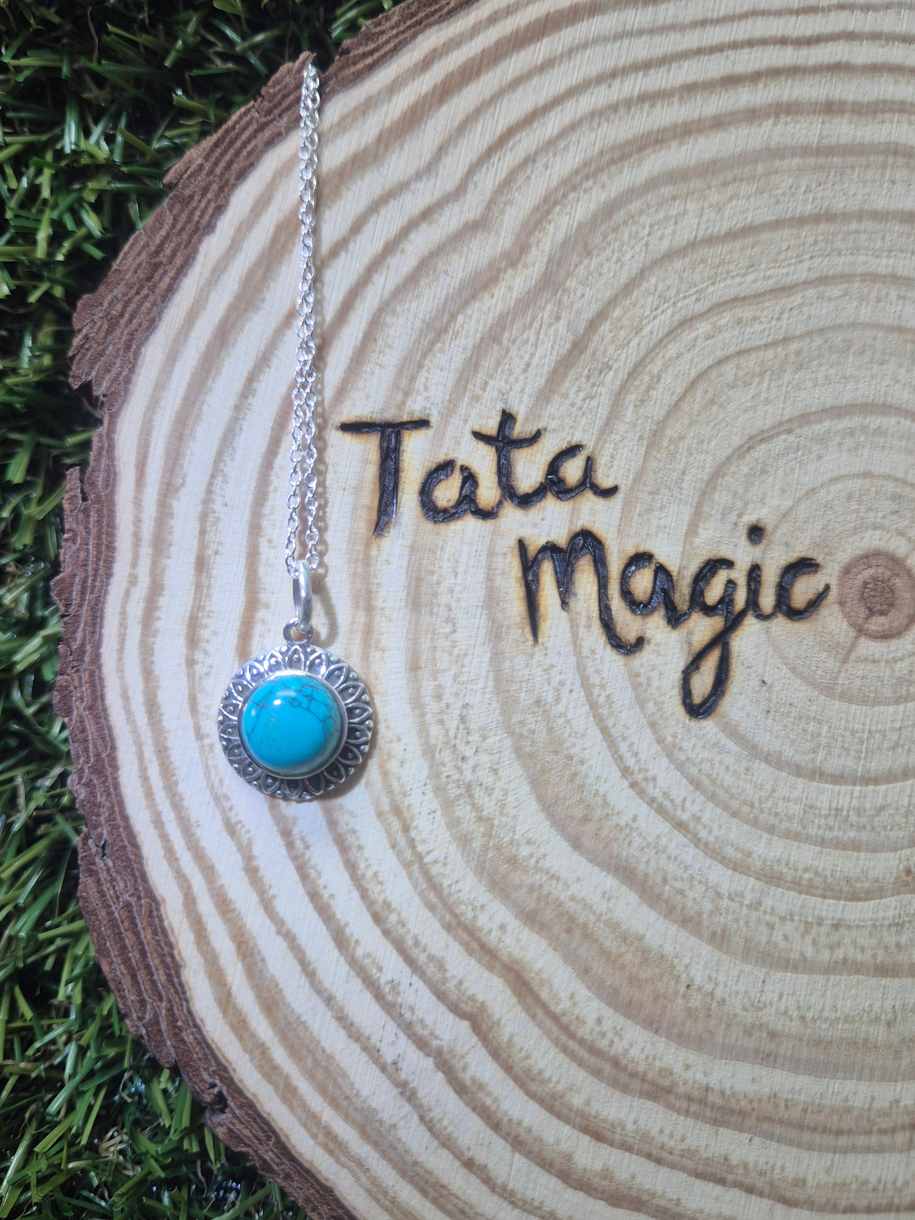Colgante consagrado de turquesa en plata 925 con cadena- Comunicación, sanación y protección ancestral
