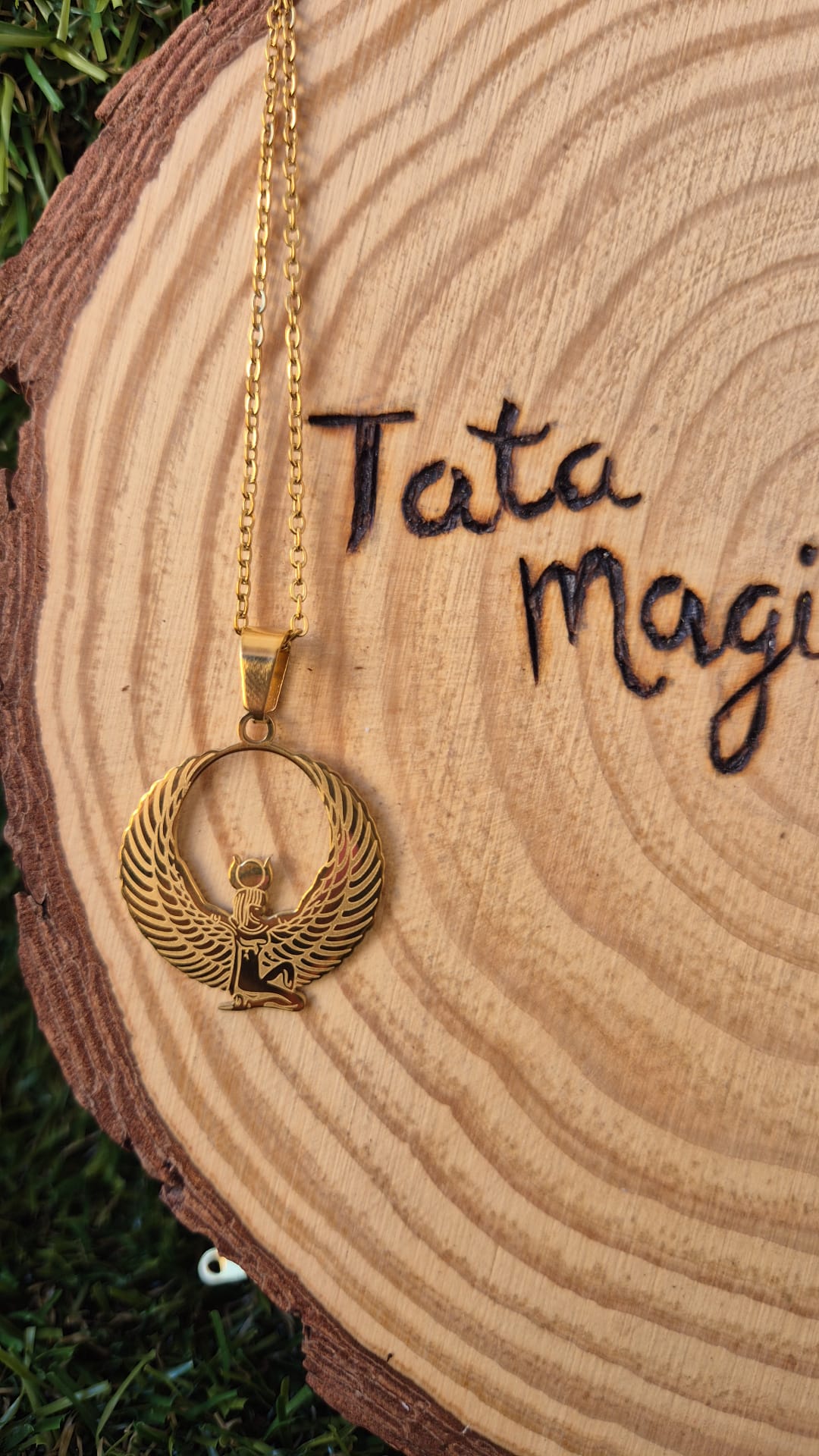 Colgante Isis Redondo en Acero Dorado – Consagrado bajo el Rito Udjat (Ojo de Horus) de Protección y Energía Femenina El Colgante Isis Redondo es un...