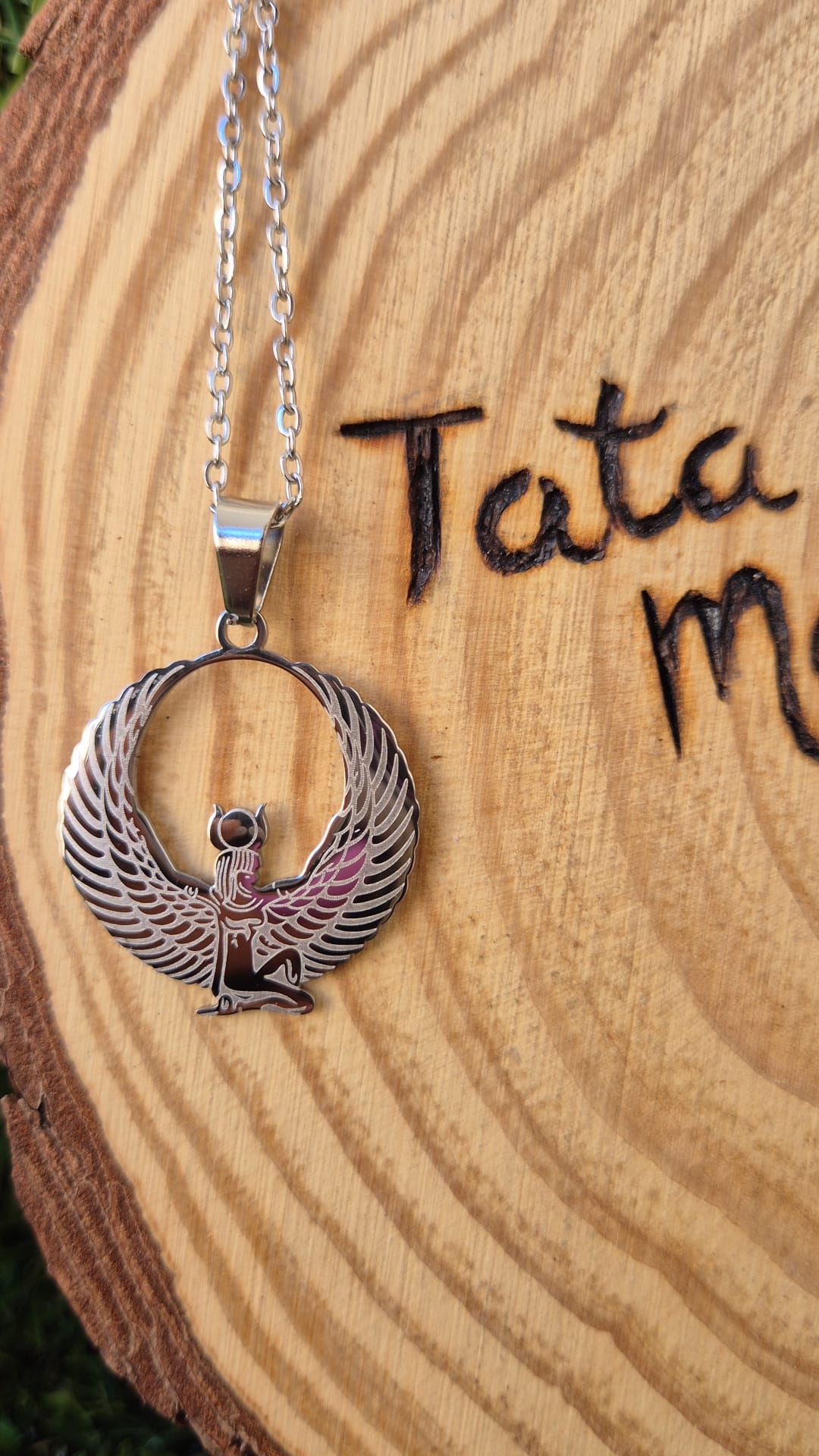 Colgante Isis Redondo en Acero Plateado - Rito Udjat de Protección y Sabiduría