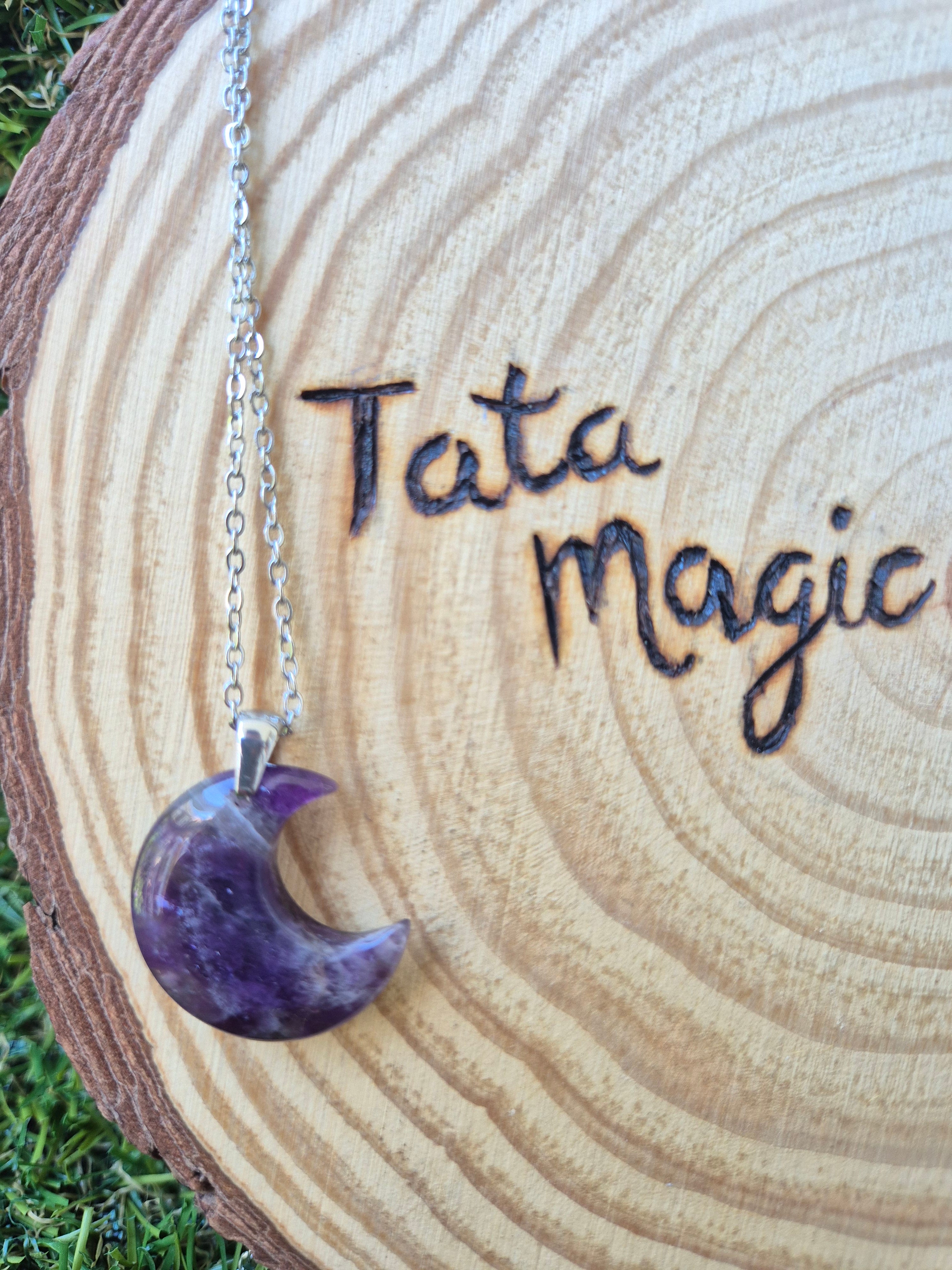 Colgante Luna de Amatista en Acero Inoxidable - Calma y Protección Energética Consagrado
