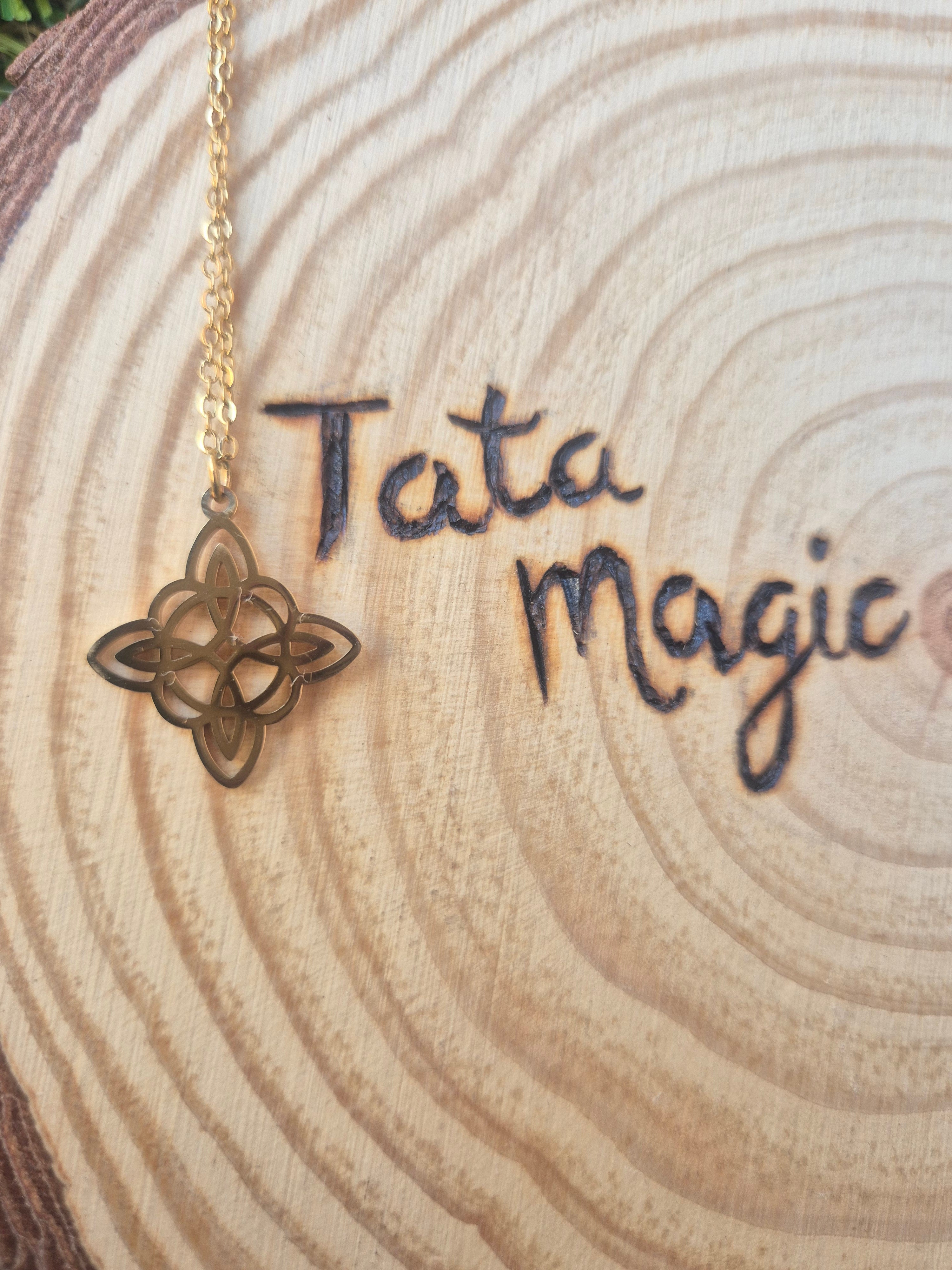 Colgante Nudo de Bruja con Ojo de Tigre en Acero Inoxidable Protección, fuerza y estilo en una sola pieza.Este colgante combina el poder del Ojo de...