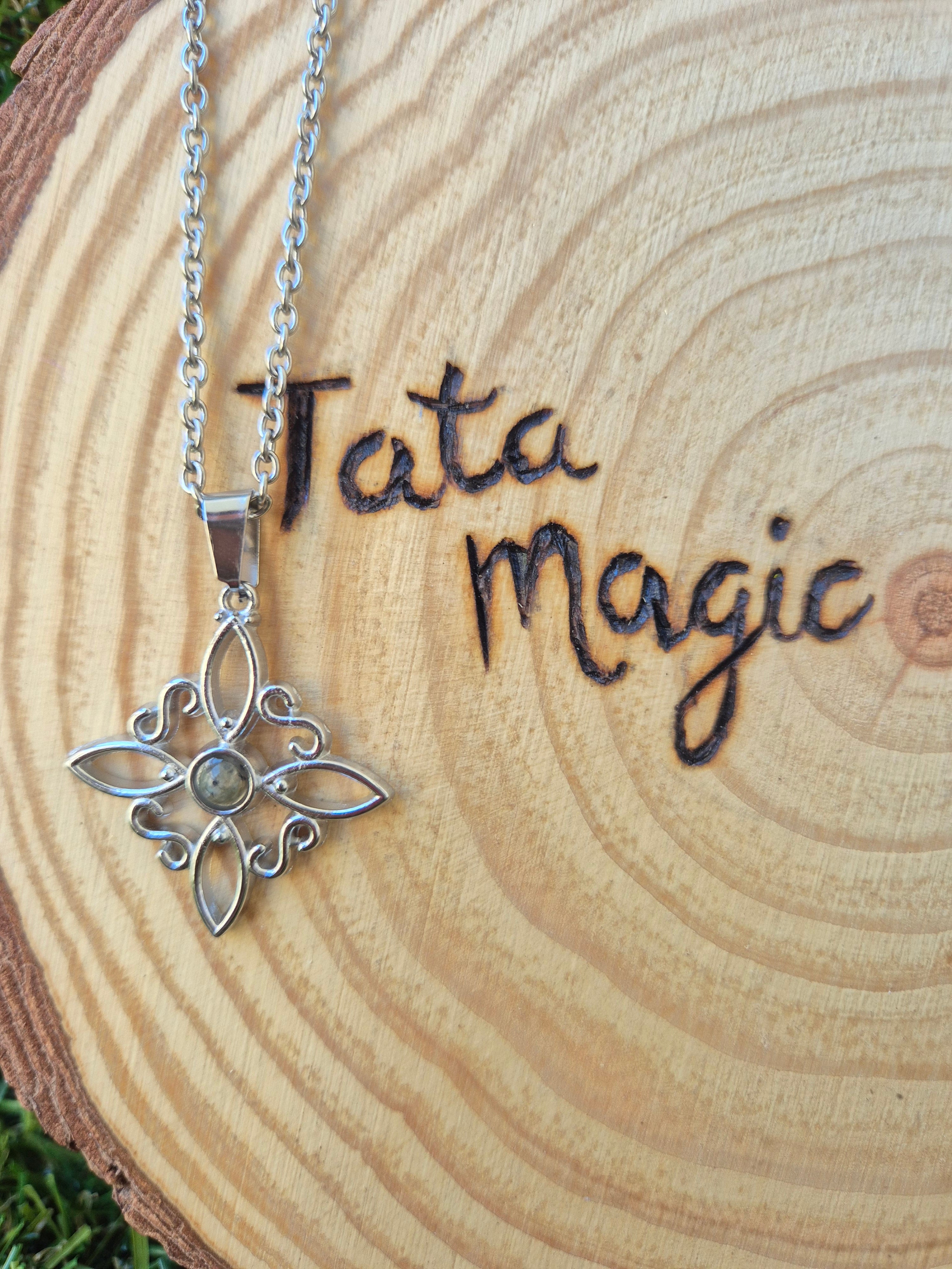 Colgante Nudo de Bruja con Labradorita en Acero Inoxidable - Protección y Magia Intuitiva