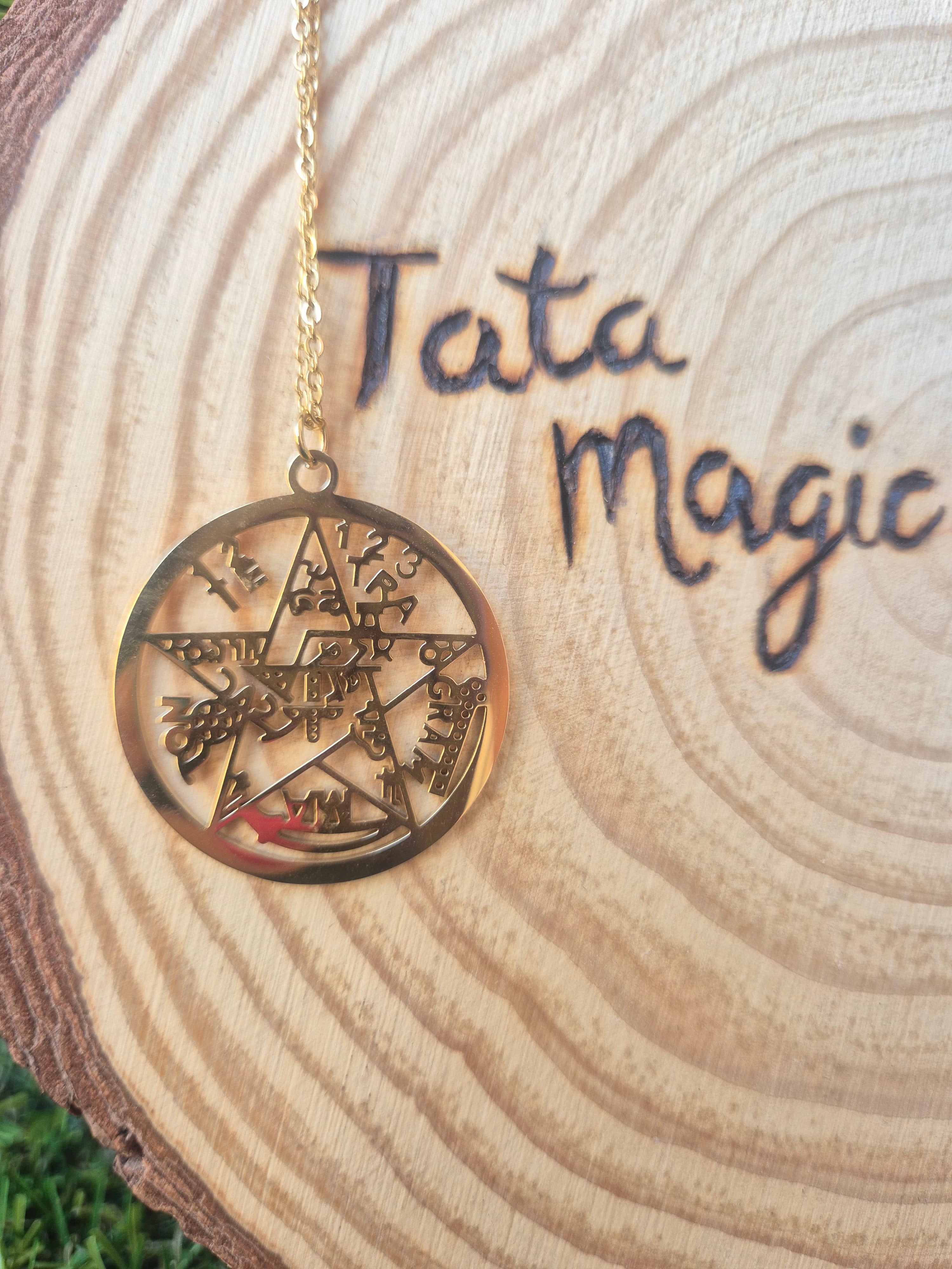 Colgante Tetragramaton en Acero Dorado - Amuleto de Protección y Éxito