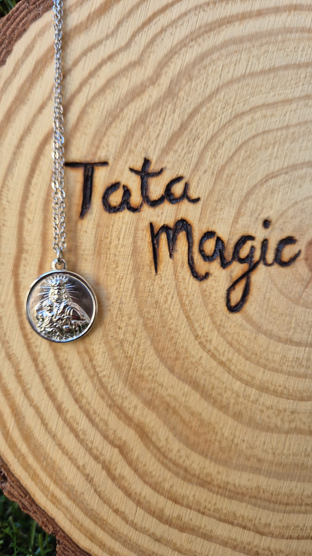 Colgante Virgen del Carmen en Acero Plateado - Amuleto de Devoción para las Ánimas del Purgatorio