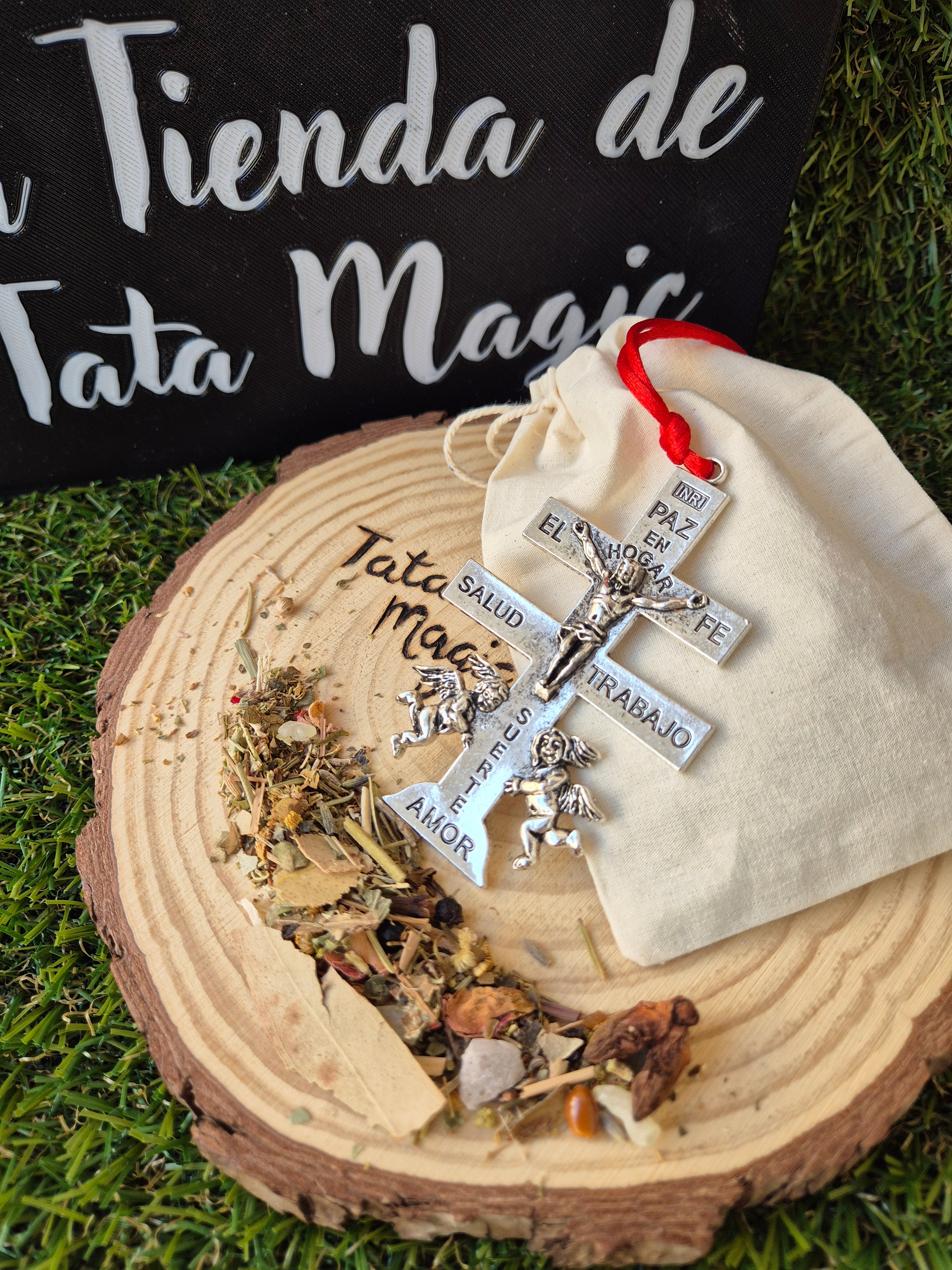 Cruz Caravaca Bendecida con Hierbas Consagradas - Protección y Bendición para el Hogar