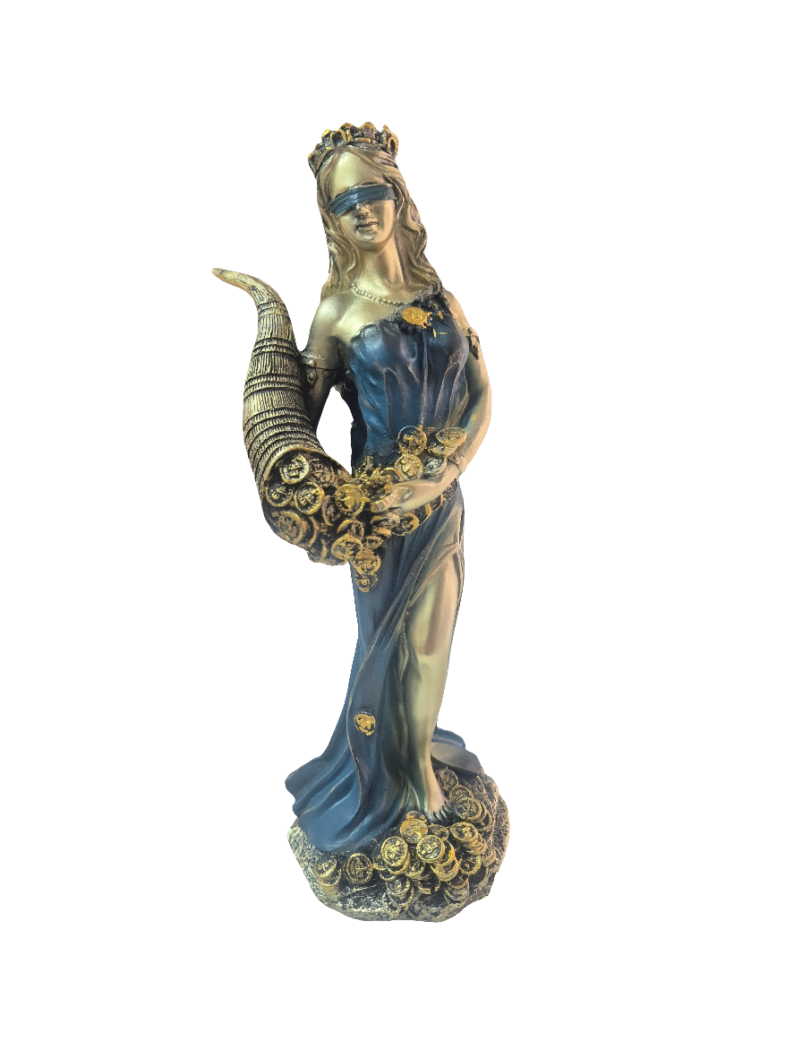 FIGURA RESINA DIOSA FORTUNA 21 CMS Las figuras de la diosa de la fortuna se suelen representar como una mujer joven y hermosa, con una corona...