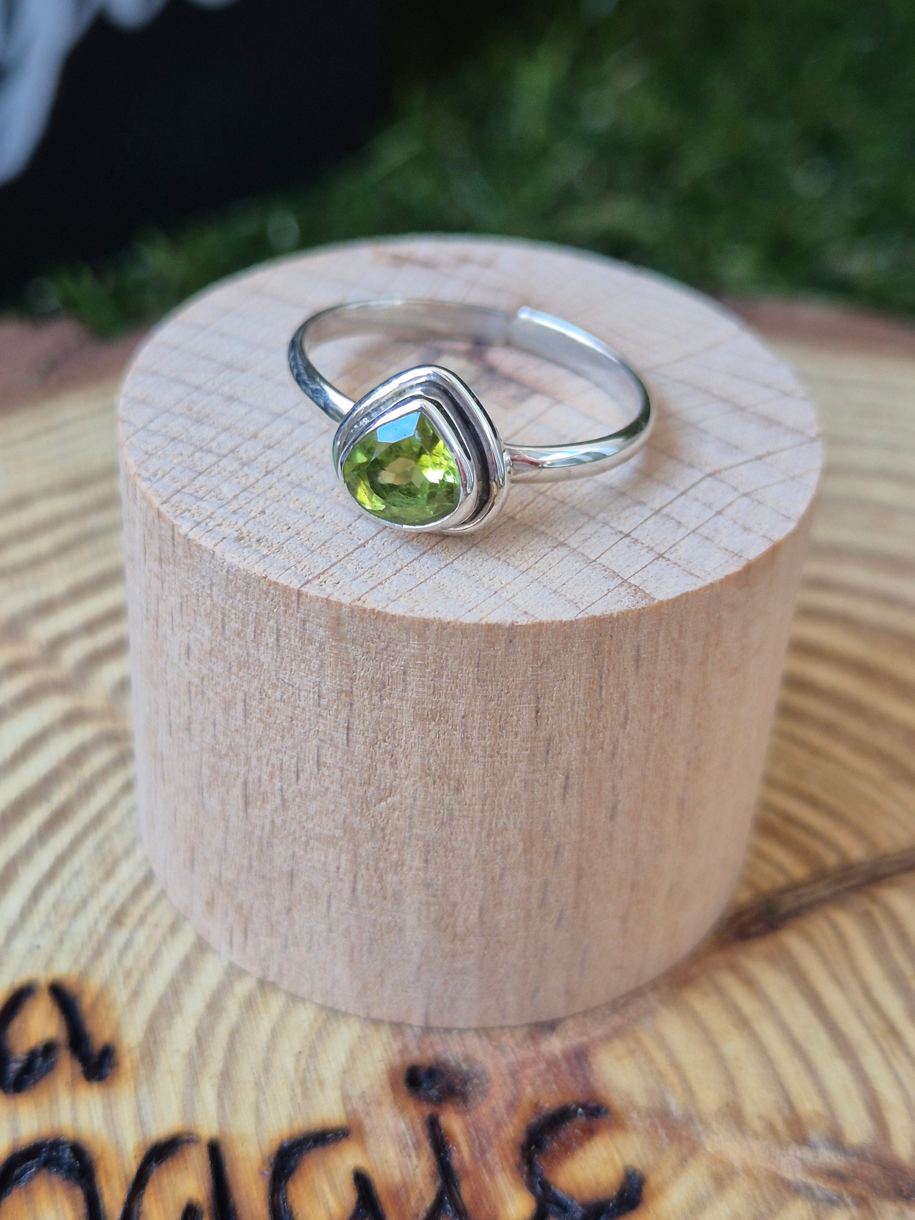 Anillo Olivino Ajustable Plata - Activación Cuántica para Cambiar el Rumbo Energético