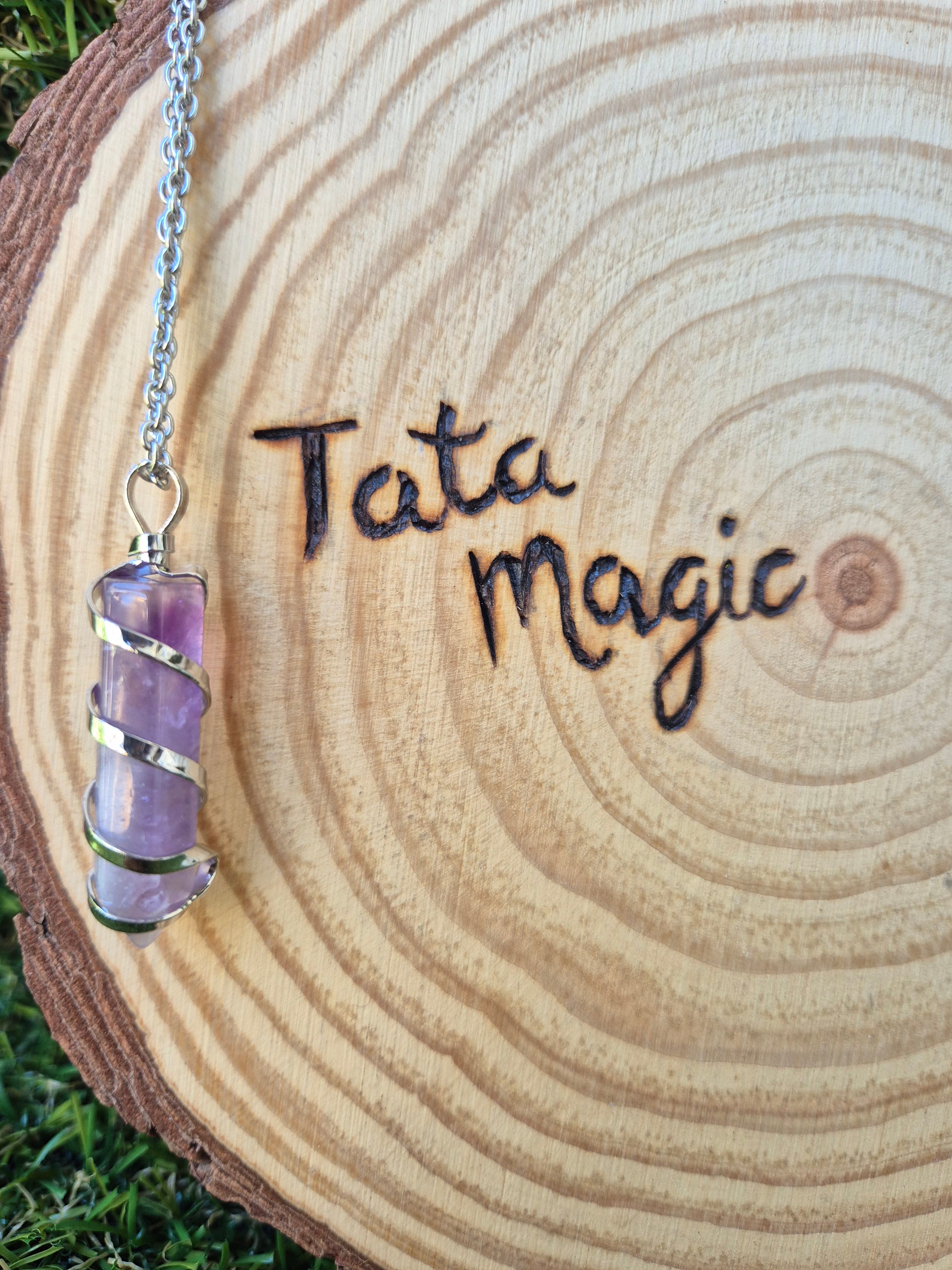 Colgante Punta de Amatista en Acero con Cadena - Quita Enredos para la Intuición