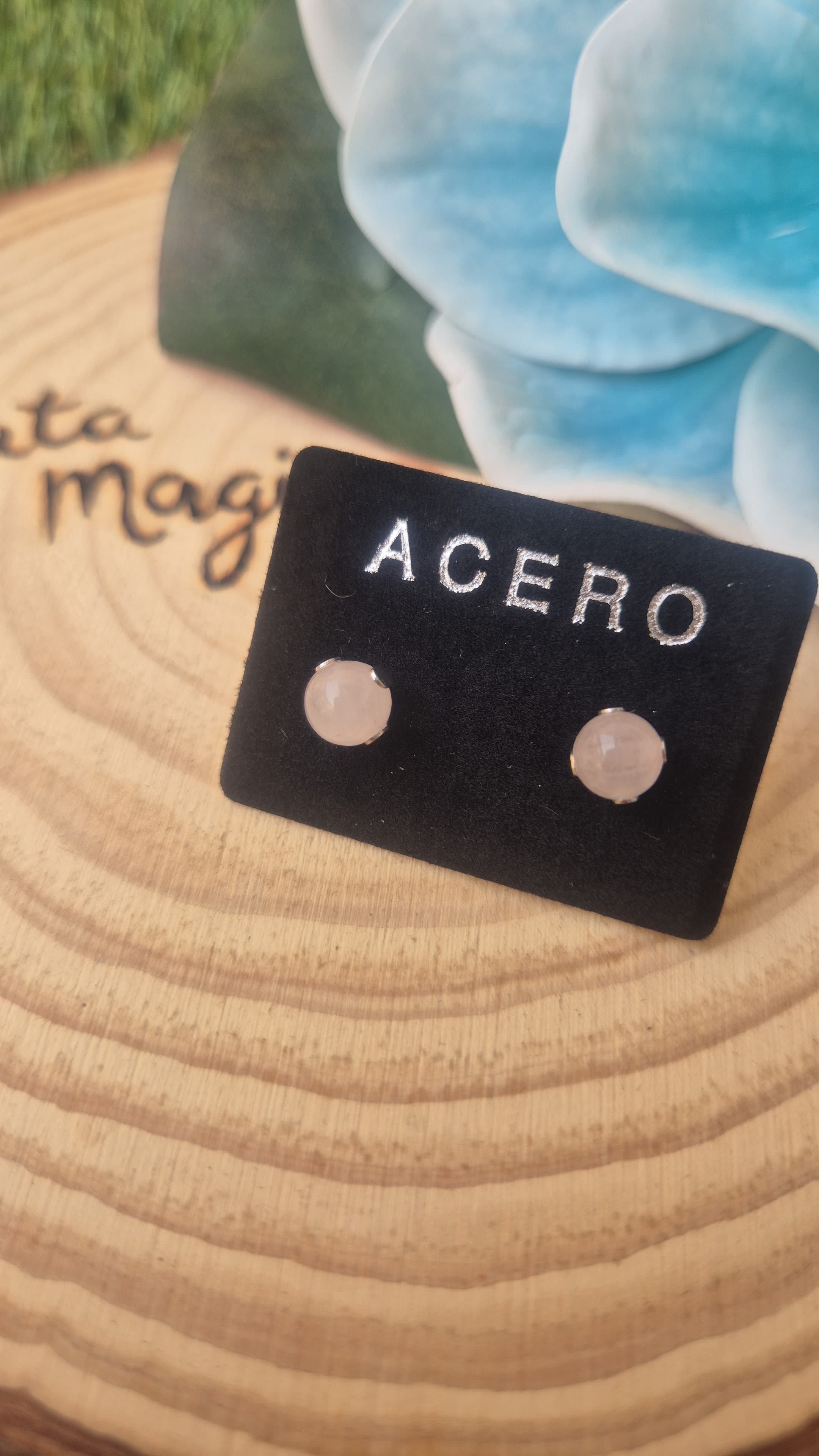 Pendientes de Cuarzo Rosa en Acero - Amor Propio, Paz Interior y Energía del Corazón