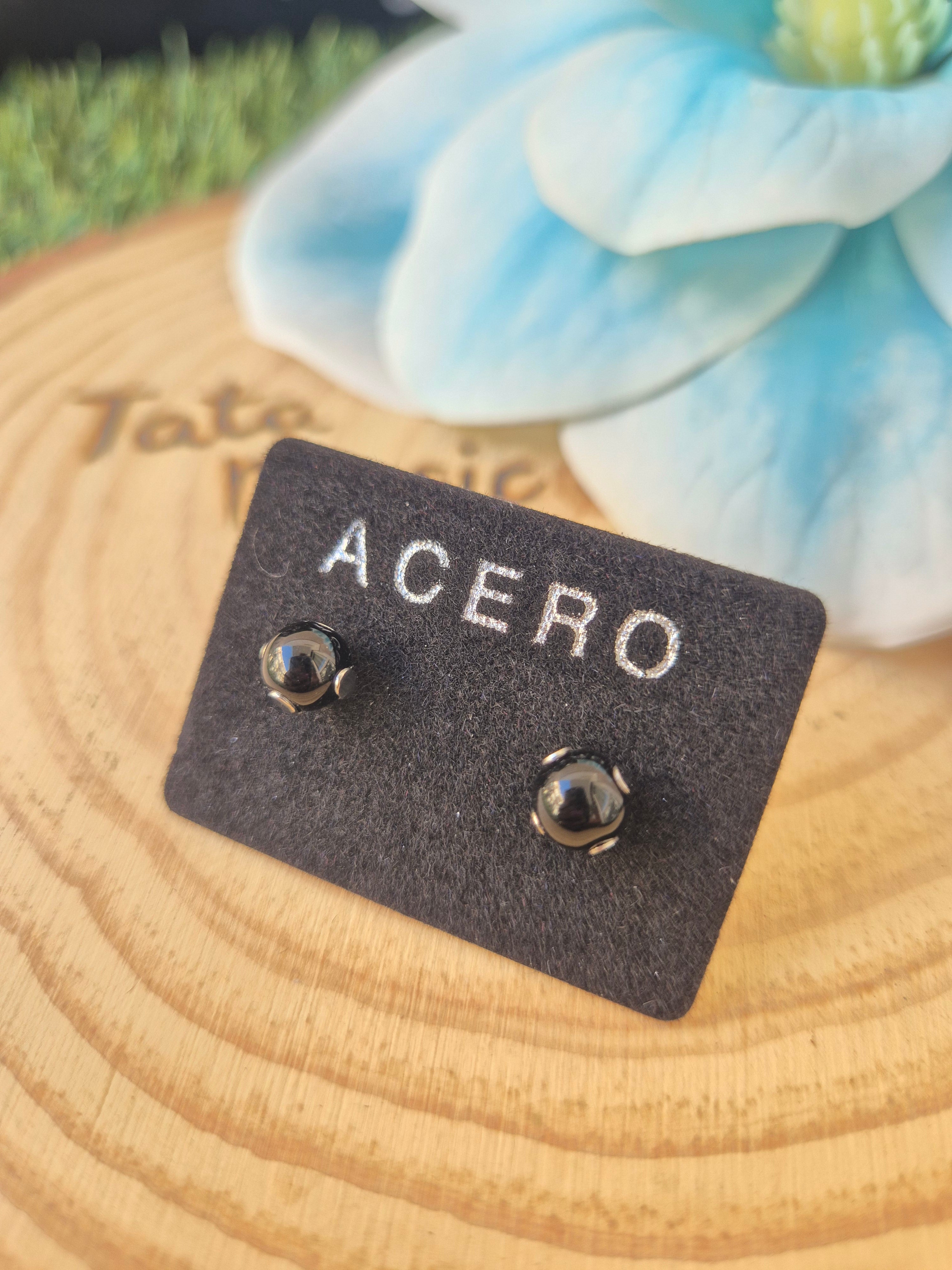 Pendientes de Shunguita Reconstituida en Acero - Protección Energética y Equilibrio