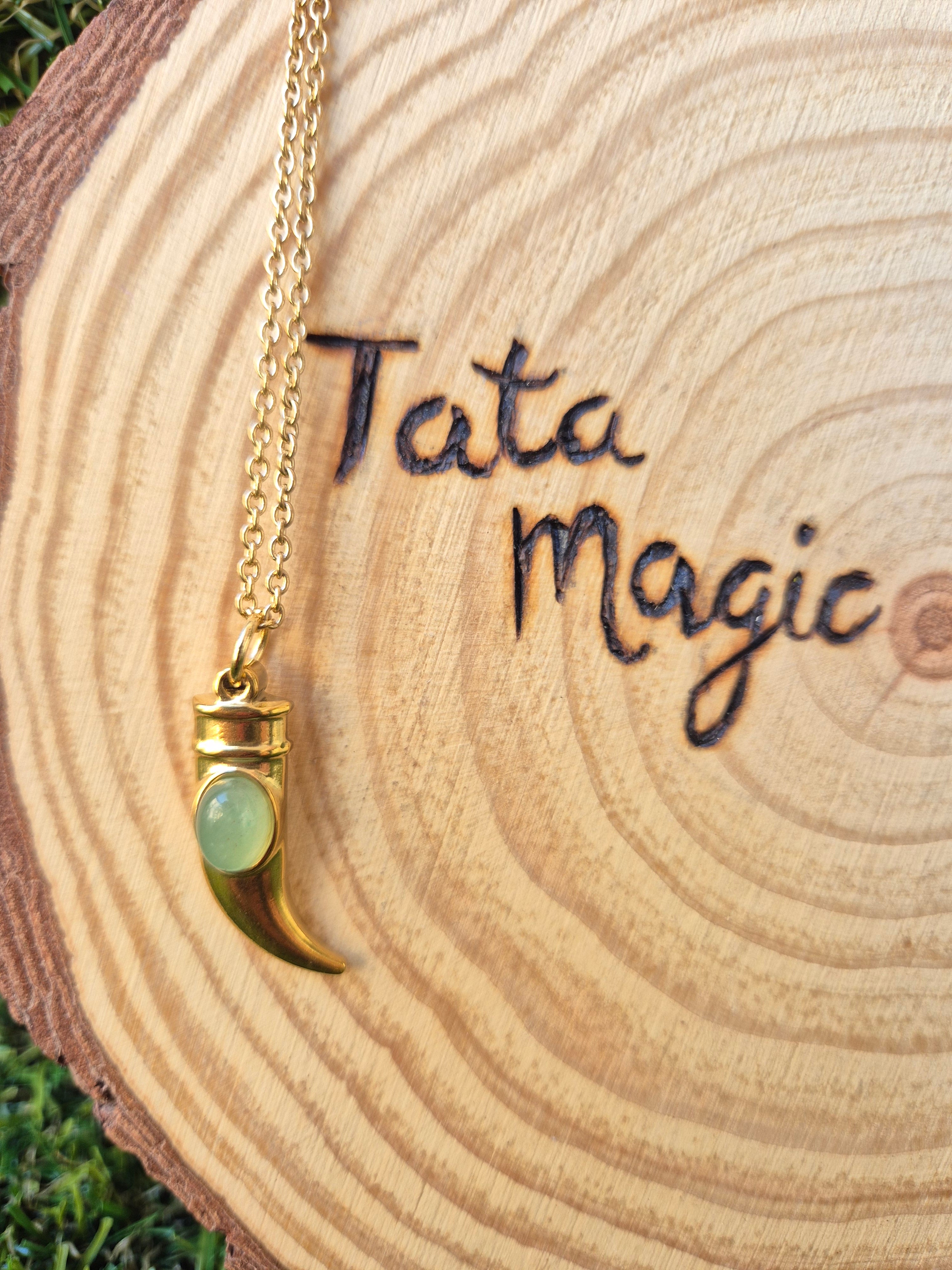 Colgante de Aventurina Verde Facetada con Cadena Acero Dorado – Prosperidad y Suerte Luce un accesorio elegante y lleno de energía positiva con este colgante de...