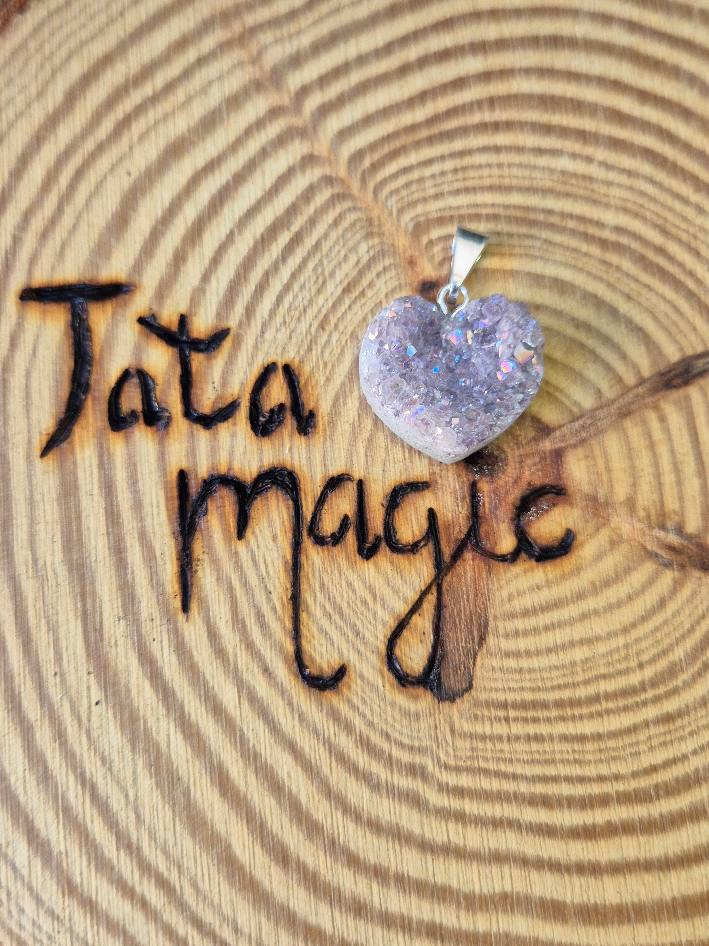 Ideal para sanar emociones, elevar la vibración y atraer paz y amor El Colgante Corazón Drusa Aqua Aura es una pieza única, brillante y profundamente energética....