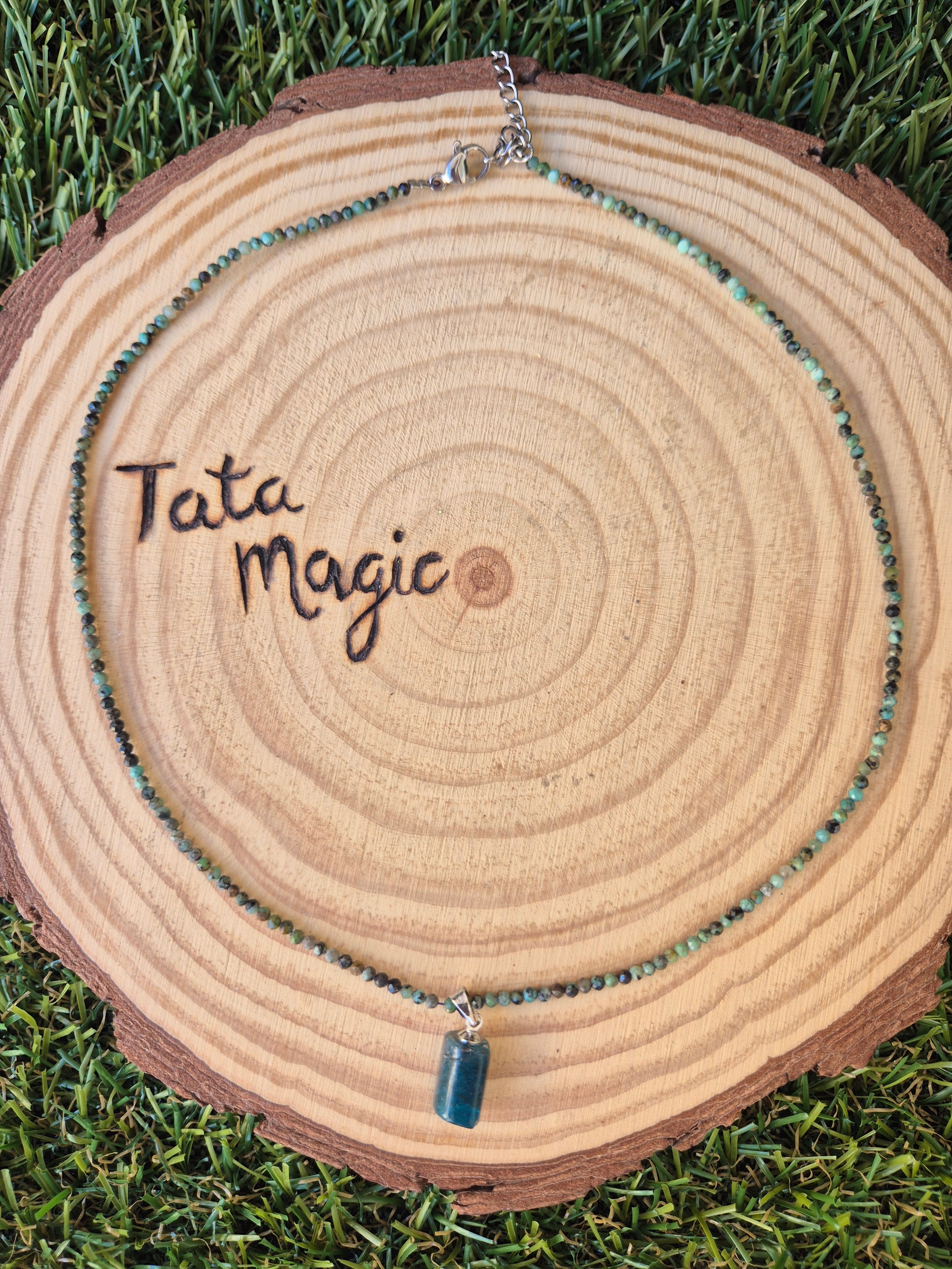 Collar de Turquesa Africana Facetado con Apatita Azul 2mm - Calma, Comunicación y Protección