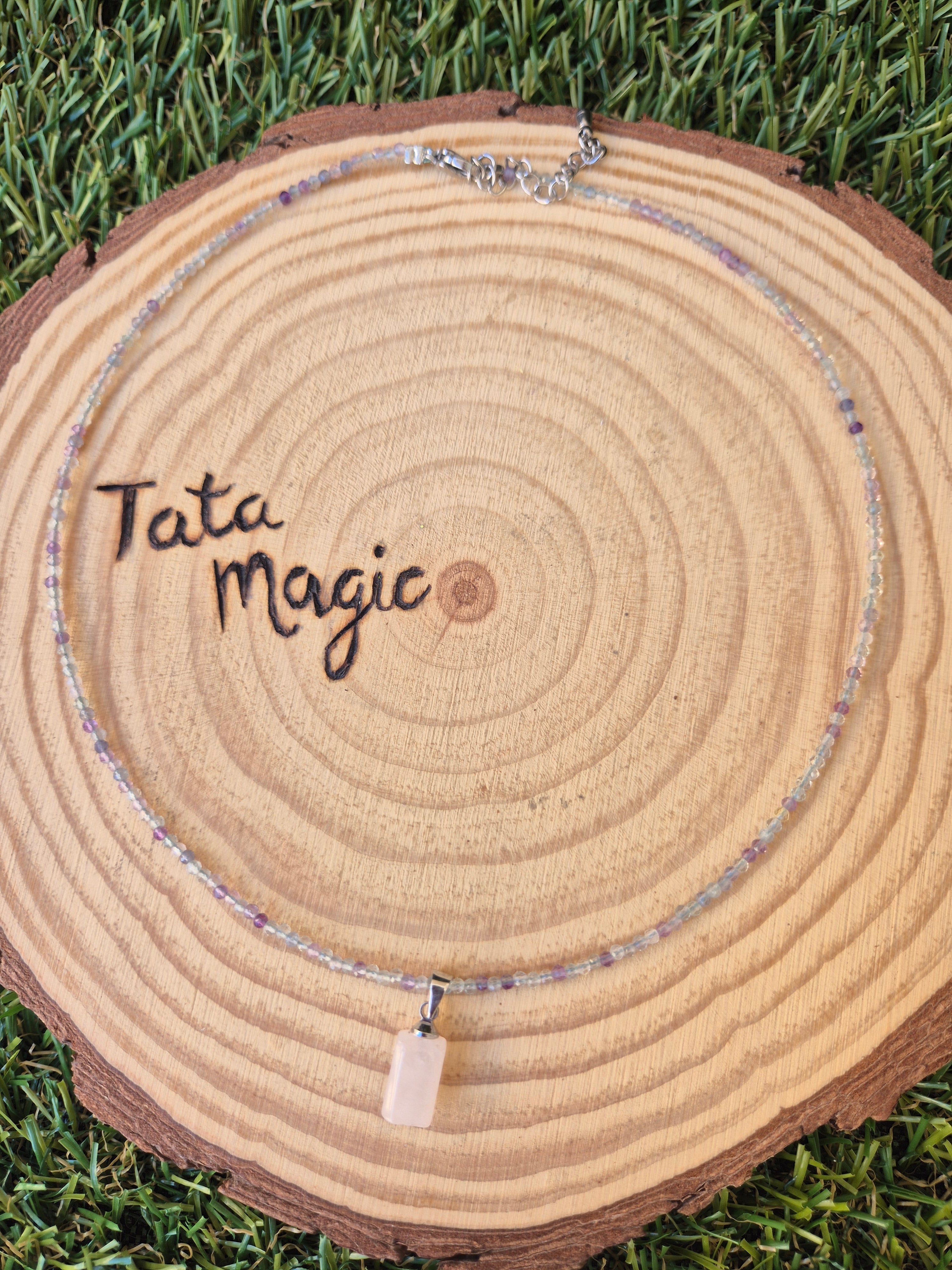 Collar de Fluorita Facetada con Cuarzo Rosa 2mm - Amor, Claridad y Equilibrio