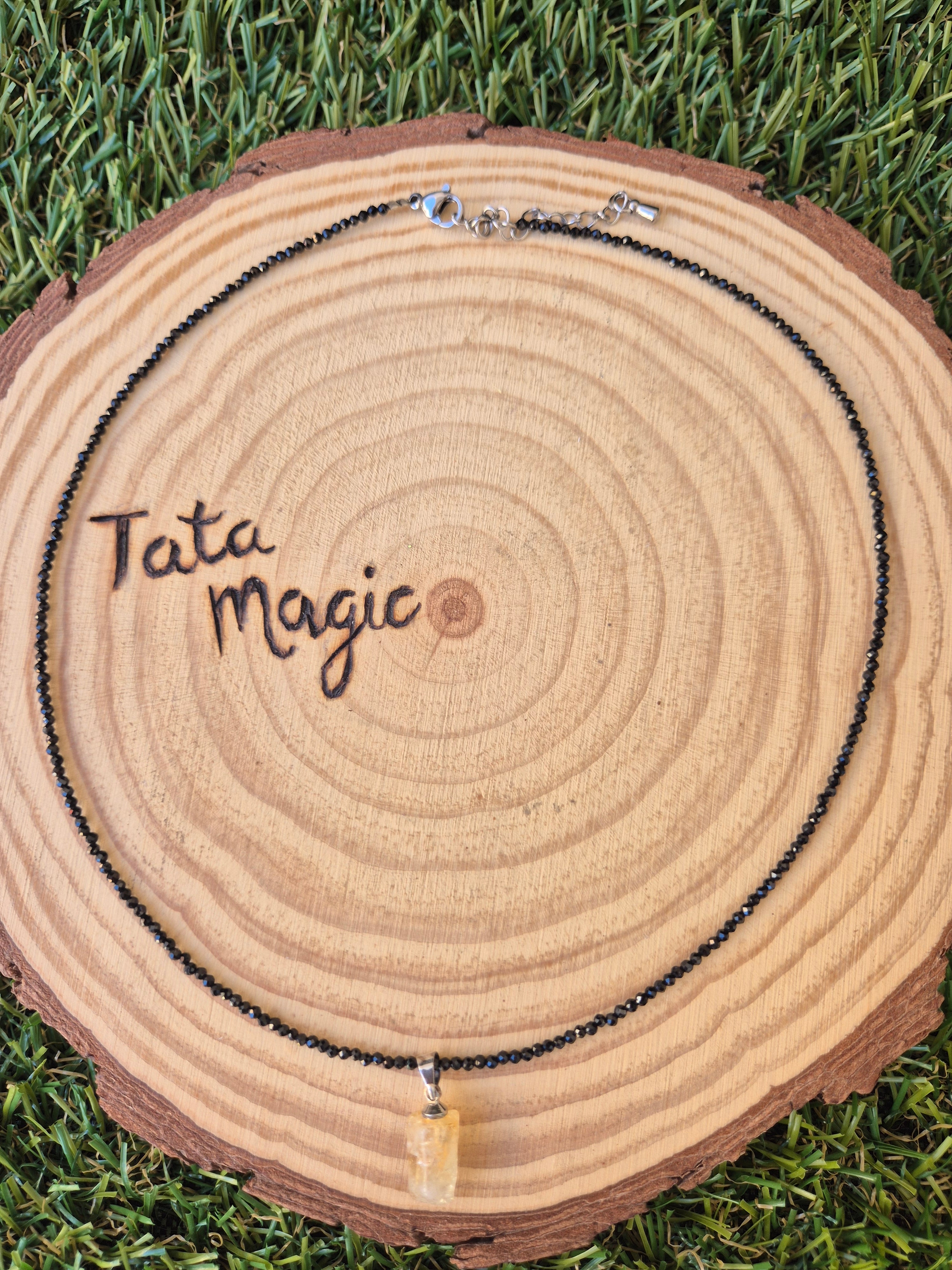 Collar de Turmalina Negra Facetada con Citrino 2 mm - Protección y Energía Positiva