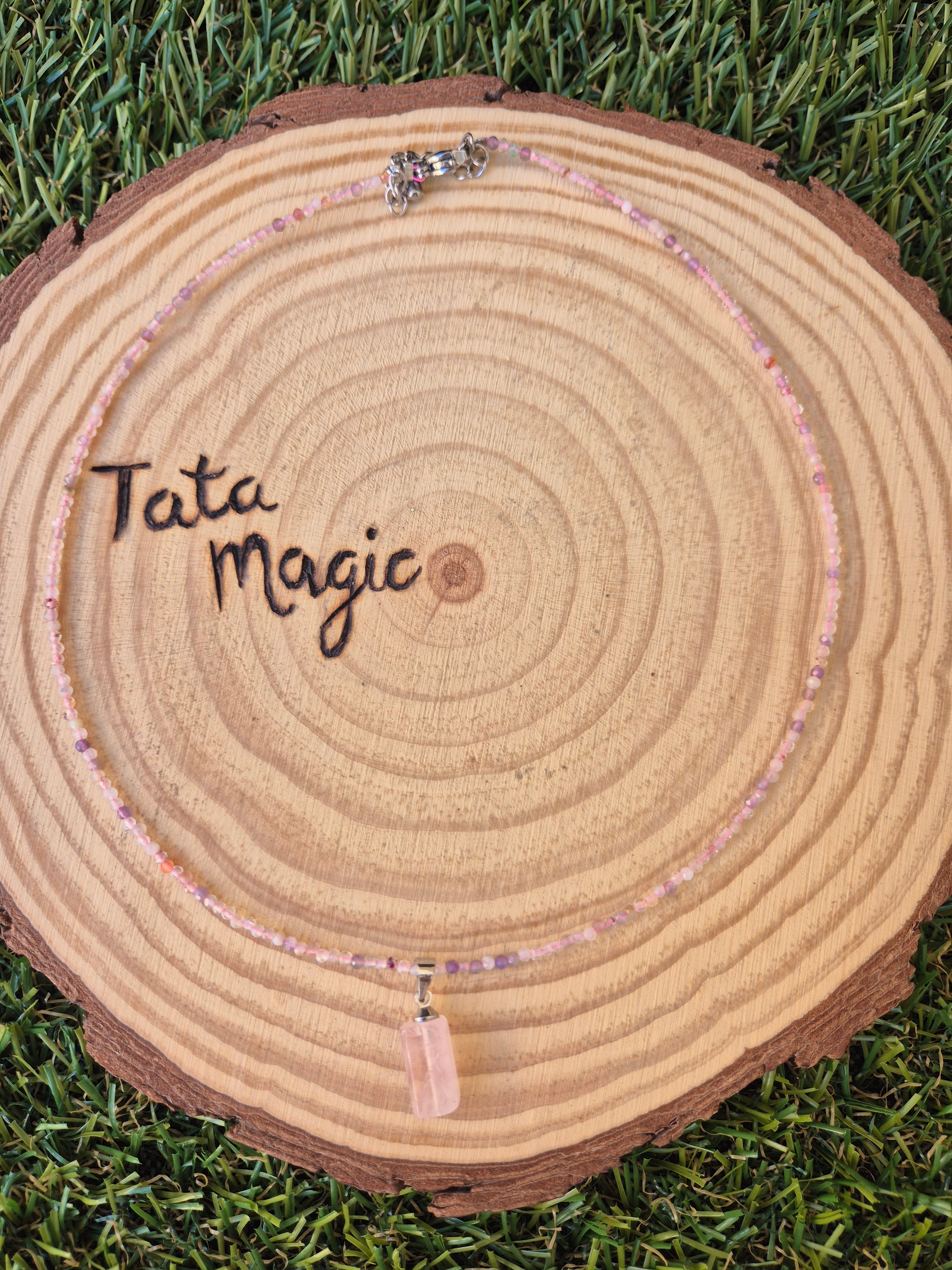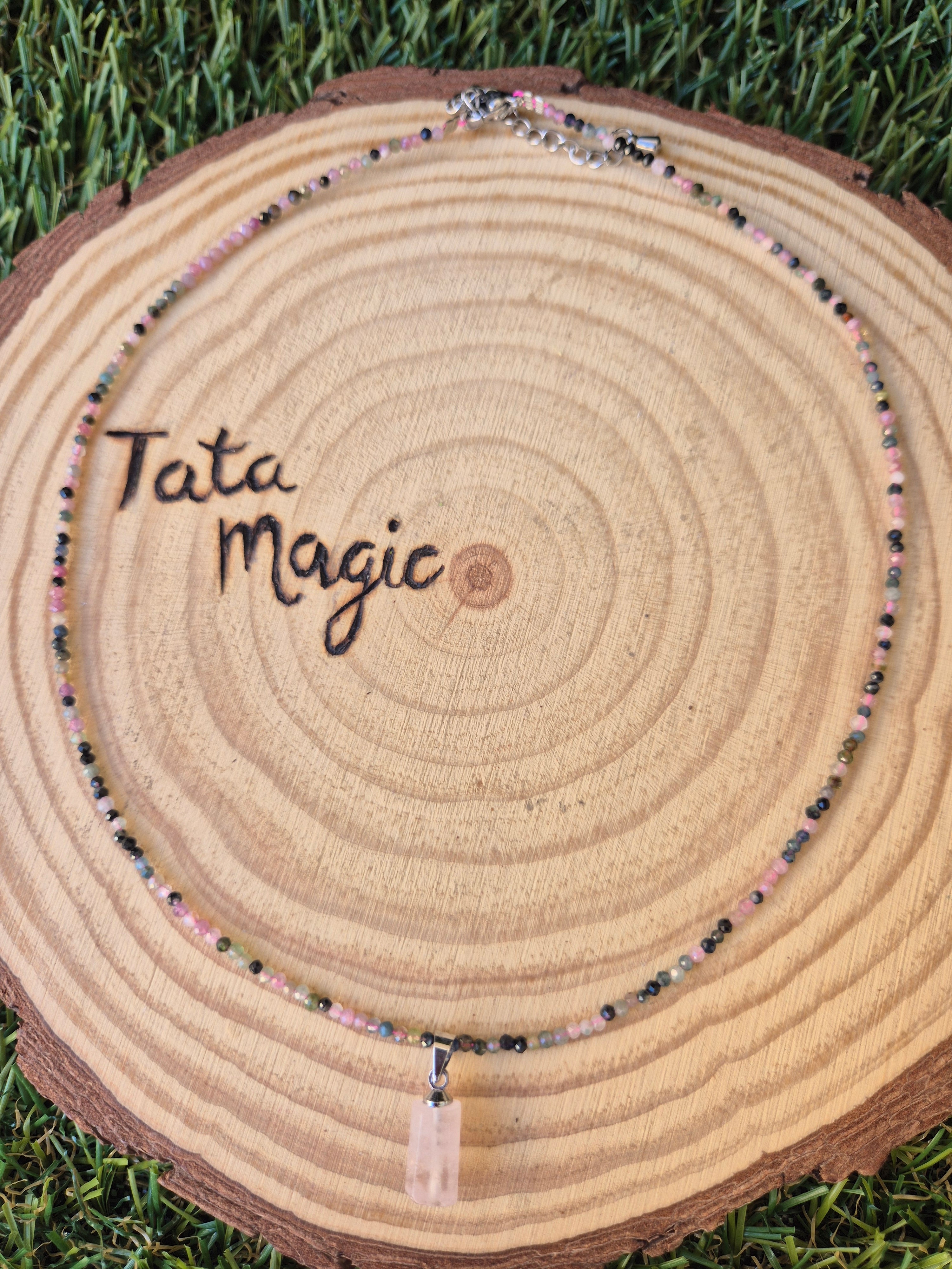 Collar de Turmalina Sandía Facetado con Cuarzo Rosa 2 mm - Amor, Protección y Sanación