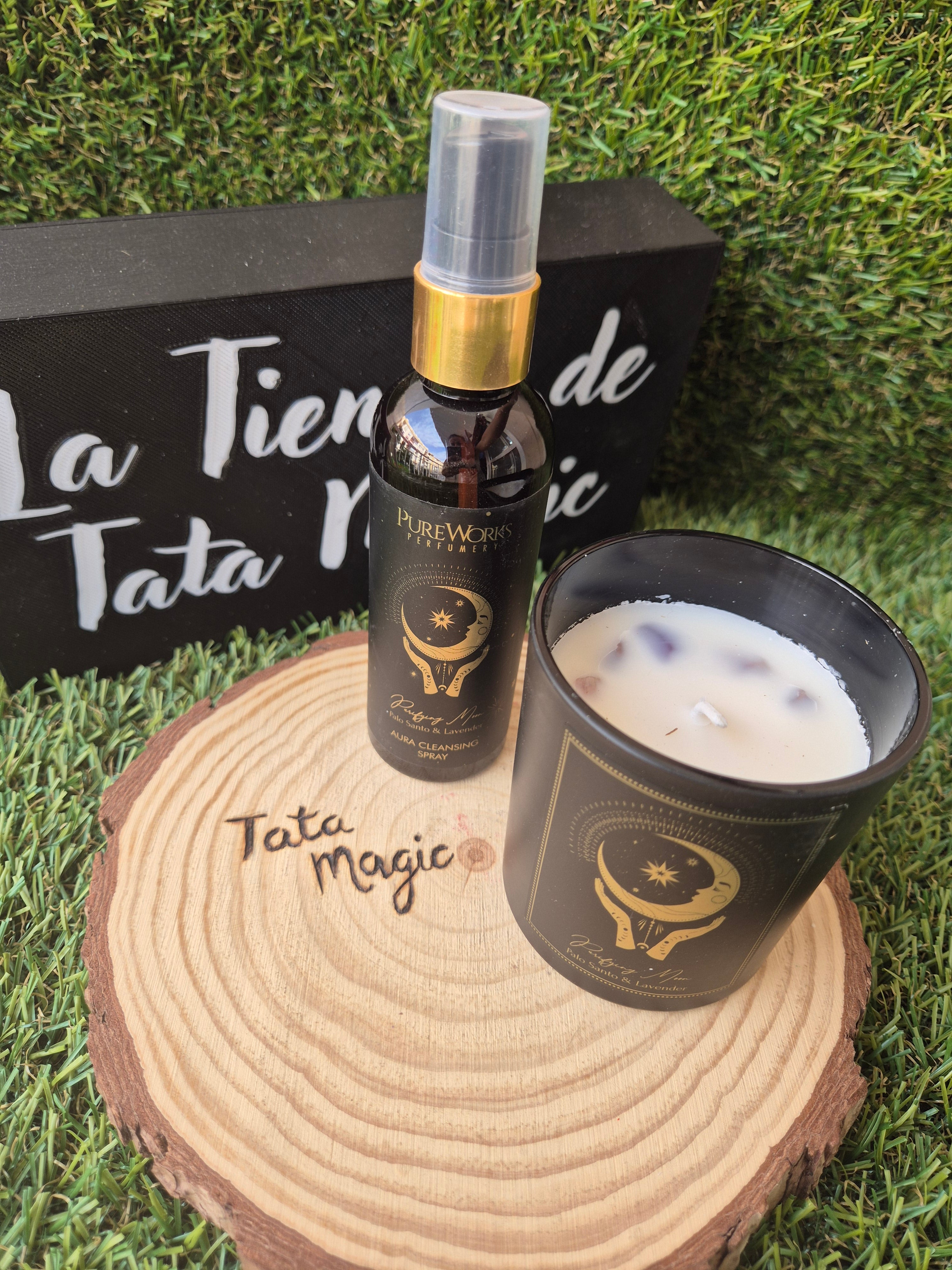 Pack Vela + Spray Pureworks Luna Purificadora / Palo Santo y Lavanda - Limpieza y Armonía Energética