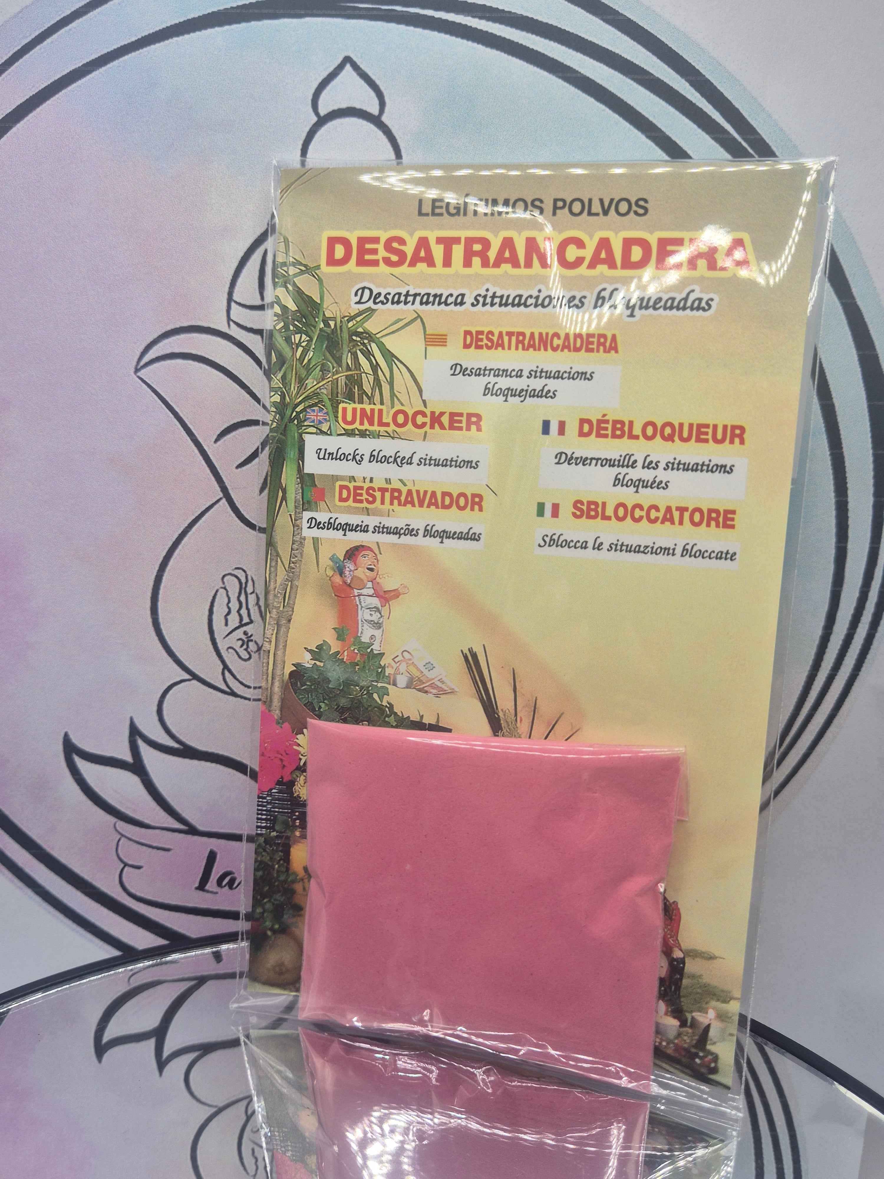 POLVO DESANTRACADERA El polvo esotérico Desatrancadera es ideal para romper cadenas y abrir caminos. se utiliza para deshacer situaciones bloqueadas por rachas de mala suerte, maleficios...
