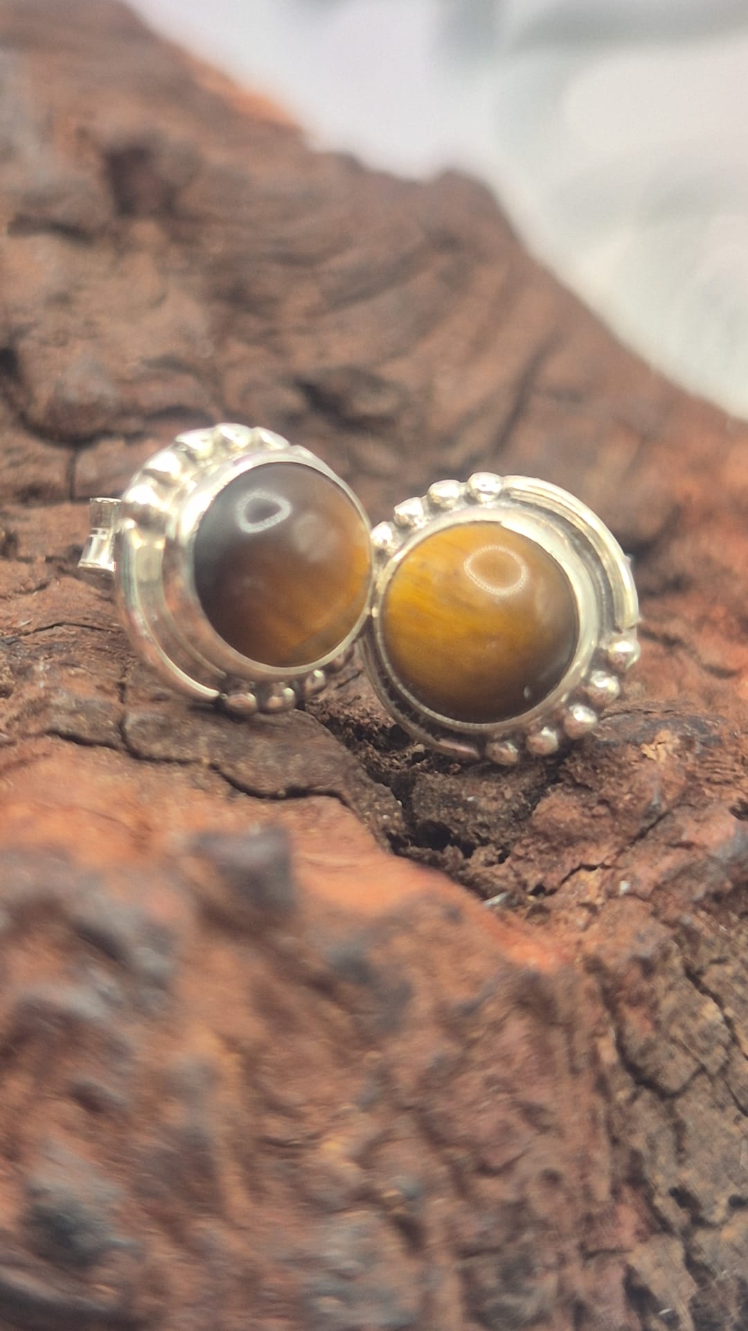 PENDIENTES PLATA 925 OJO DE TIGRE REDONDOS Pendientes de plata de ley y Ojo Tigre. Con forma redonda engarzada en plata 925 a su alrededor. El...