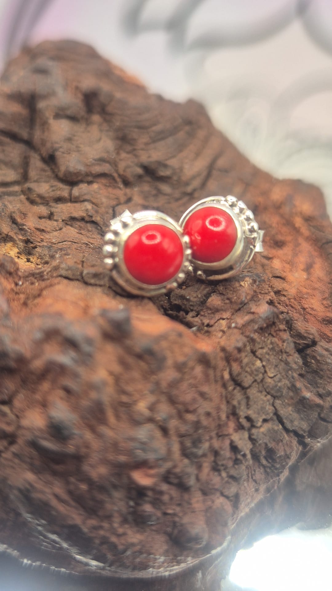 PENDIENTES PLATA CORAL REDONDOS Pendientes de plata de ley y Coral. Encontramos con forma redonda engarzada en plata 925 a su alrededor. El cierre es de...