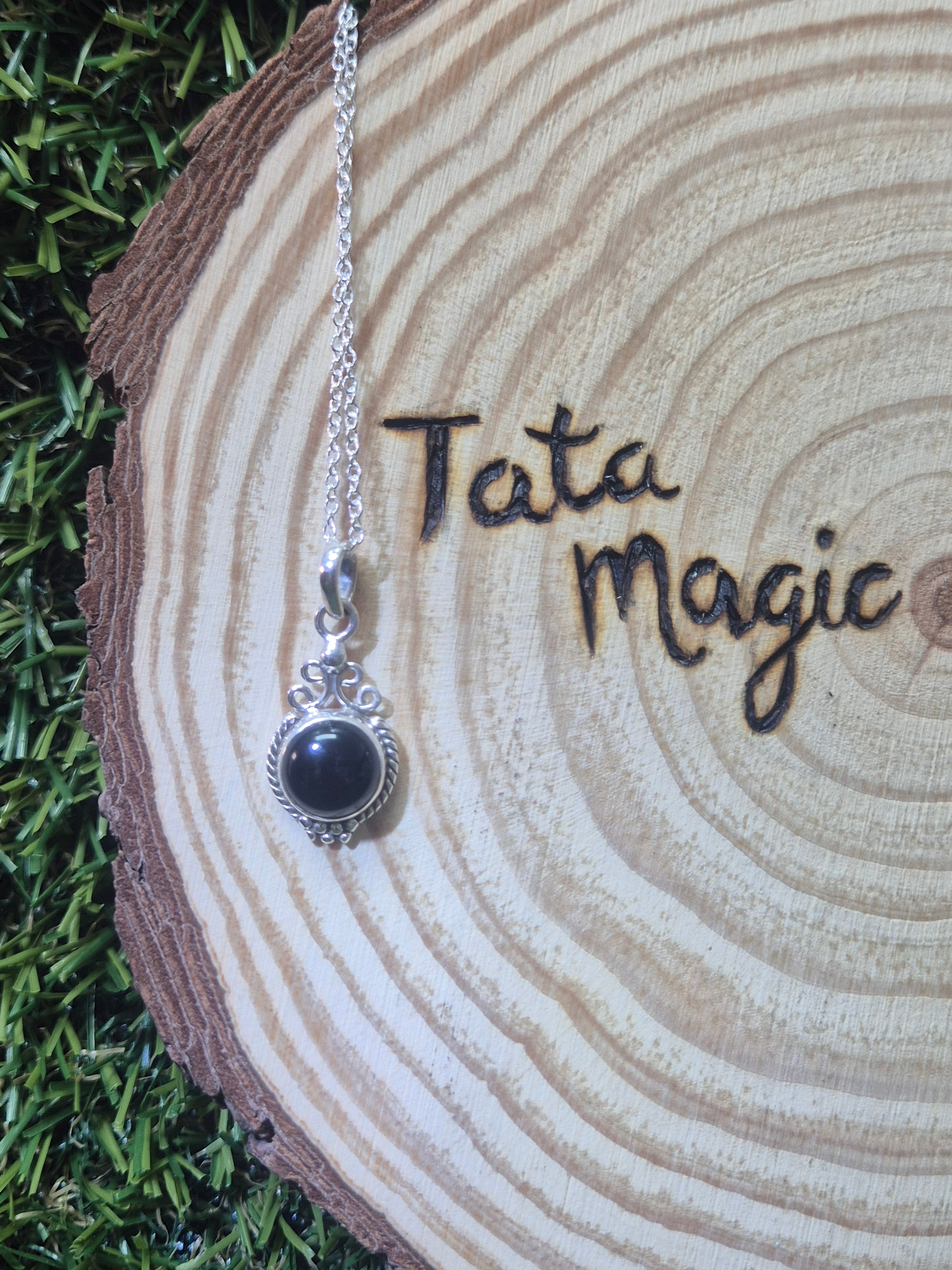 Colgante consagrado de Ónix en plata 925 con cadena-Fortaleza, protección y enraizamiento