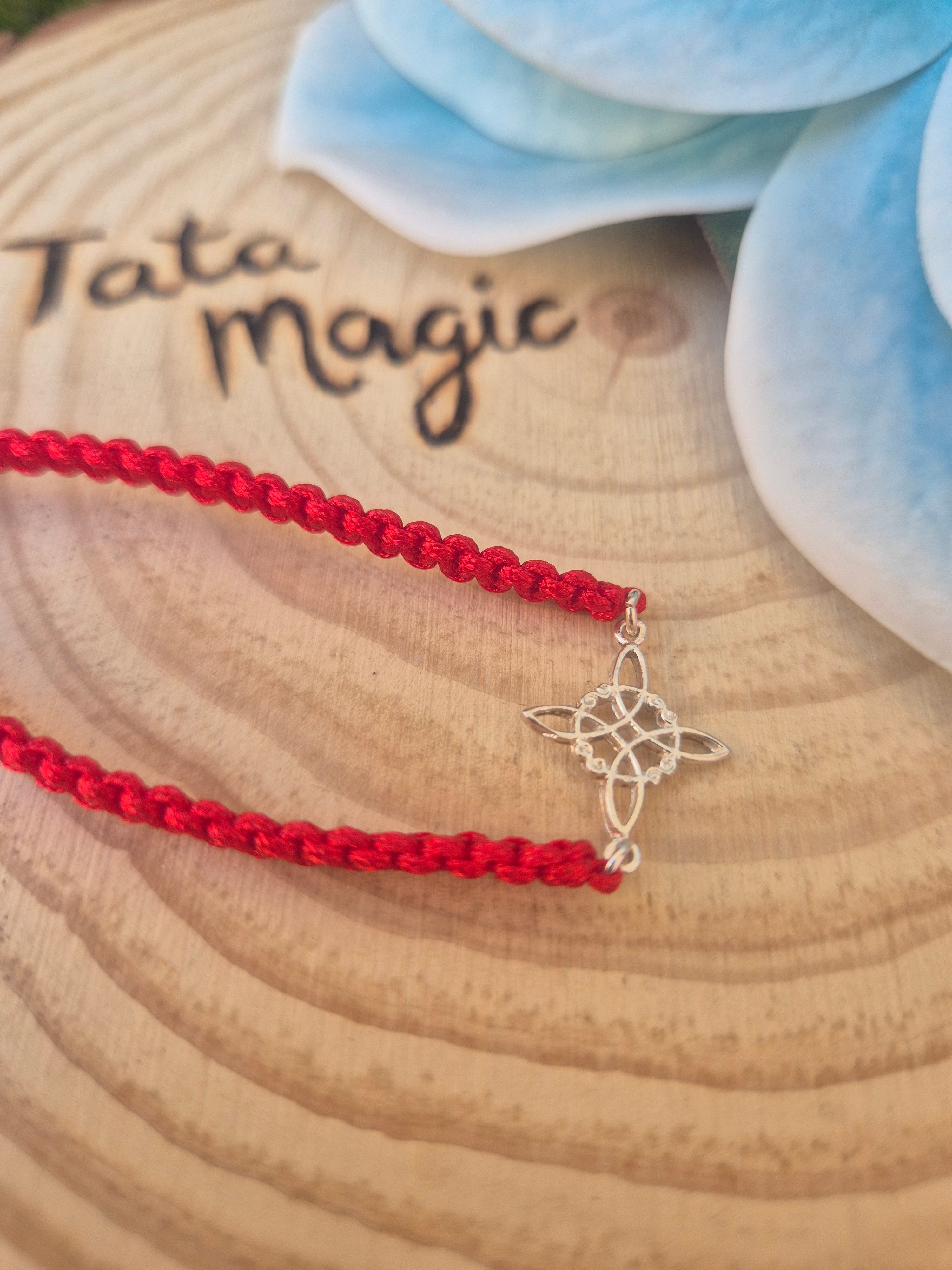 Pulsera Macramé Roja con Nudo de Bruja Plata -Protección, Magia y Poder Femenino