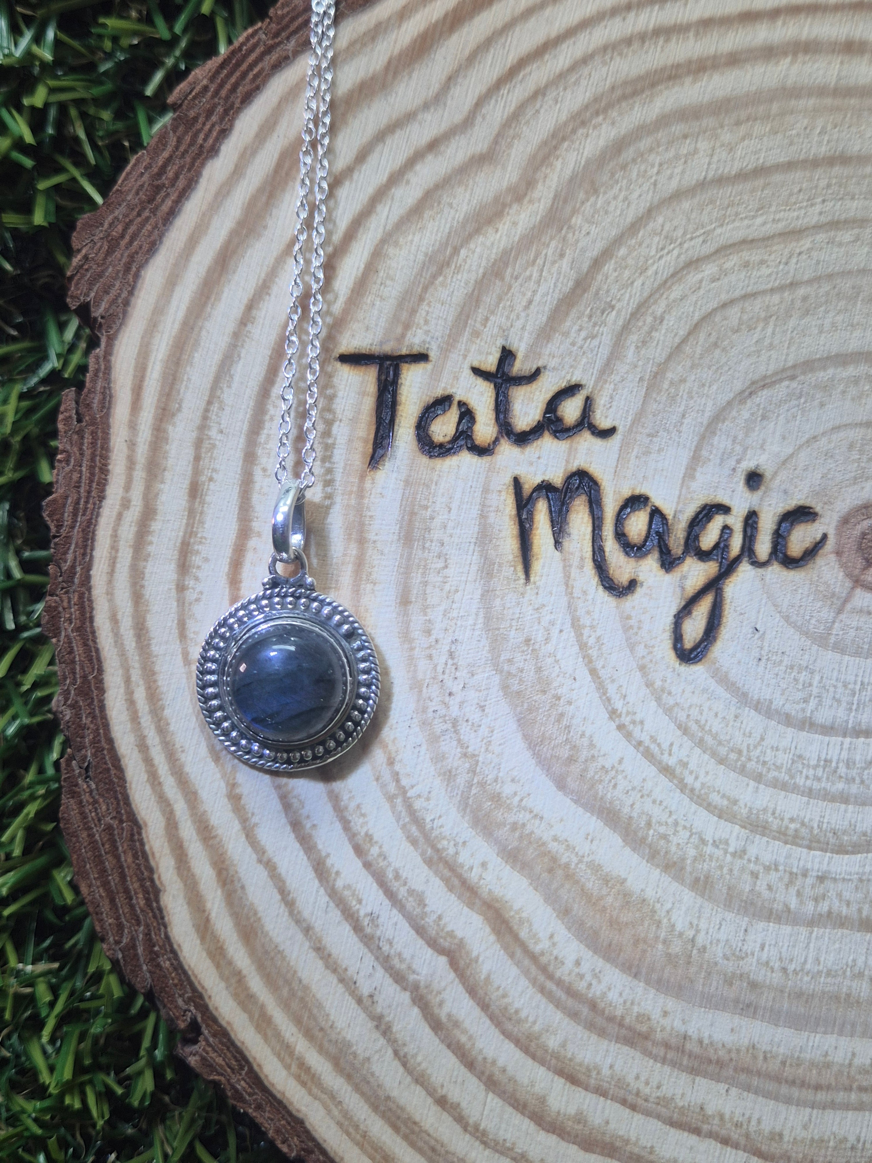 Colgante consagrado de labradorita en plata 925 con cadena- Magia, intuición y protección psíquica