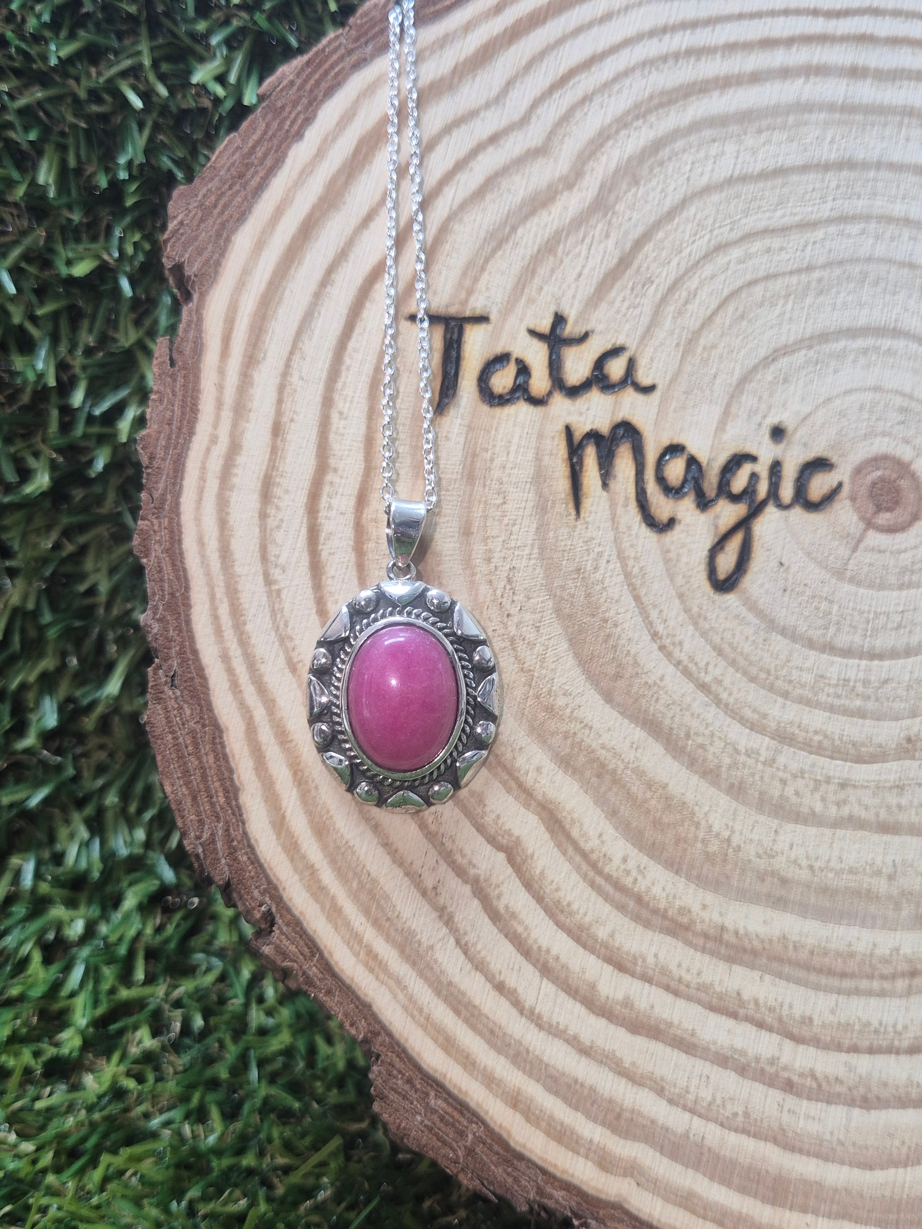 Colgante consagrado de rubí en plata 925 con cadena- Pasión, coraje y protección energética
