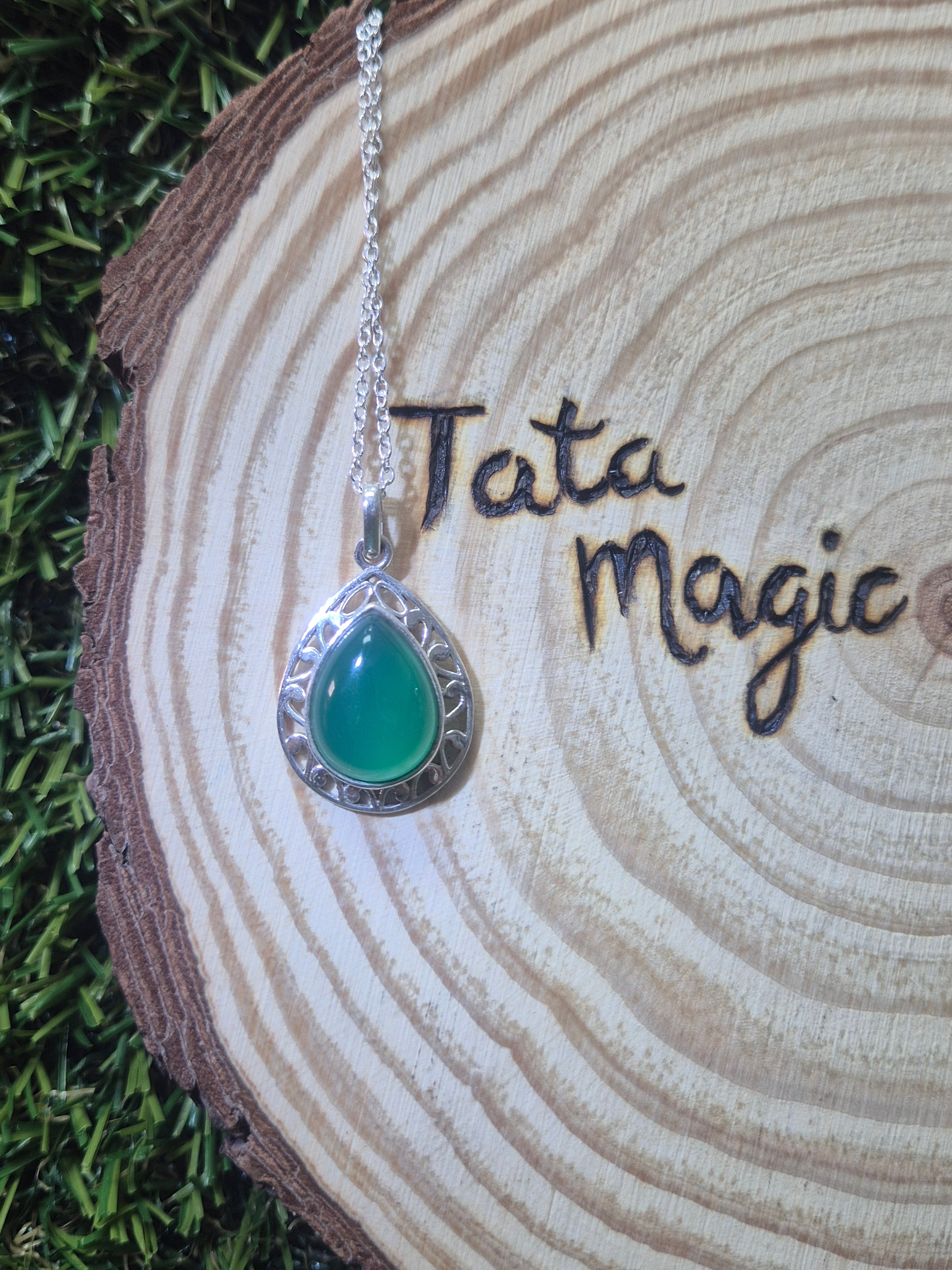 Colgante consagrado de aventurina verde lágrima en plata 925 con cadena- Abundancia, bienestar y nuevos comienzos