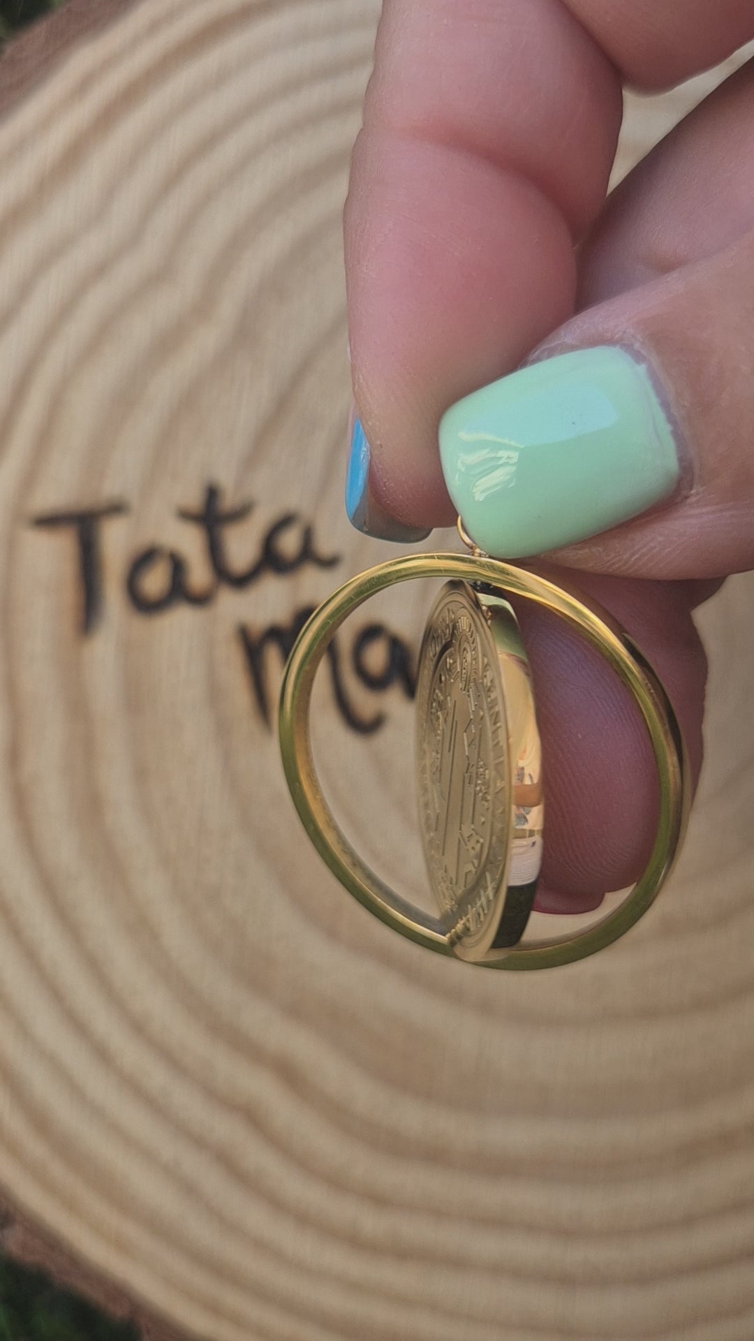 Colgante Giratorio San Benito en Acero Dorado – Protección y Fe Luce y protege tu energía con este Colgante Giratorio de San Benito fabricado en acero...
