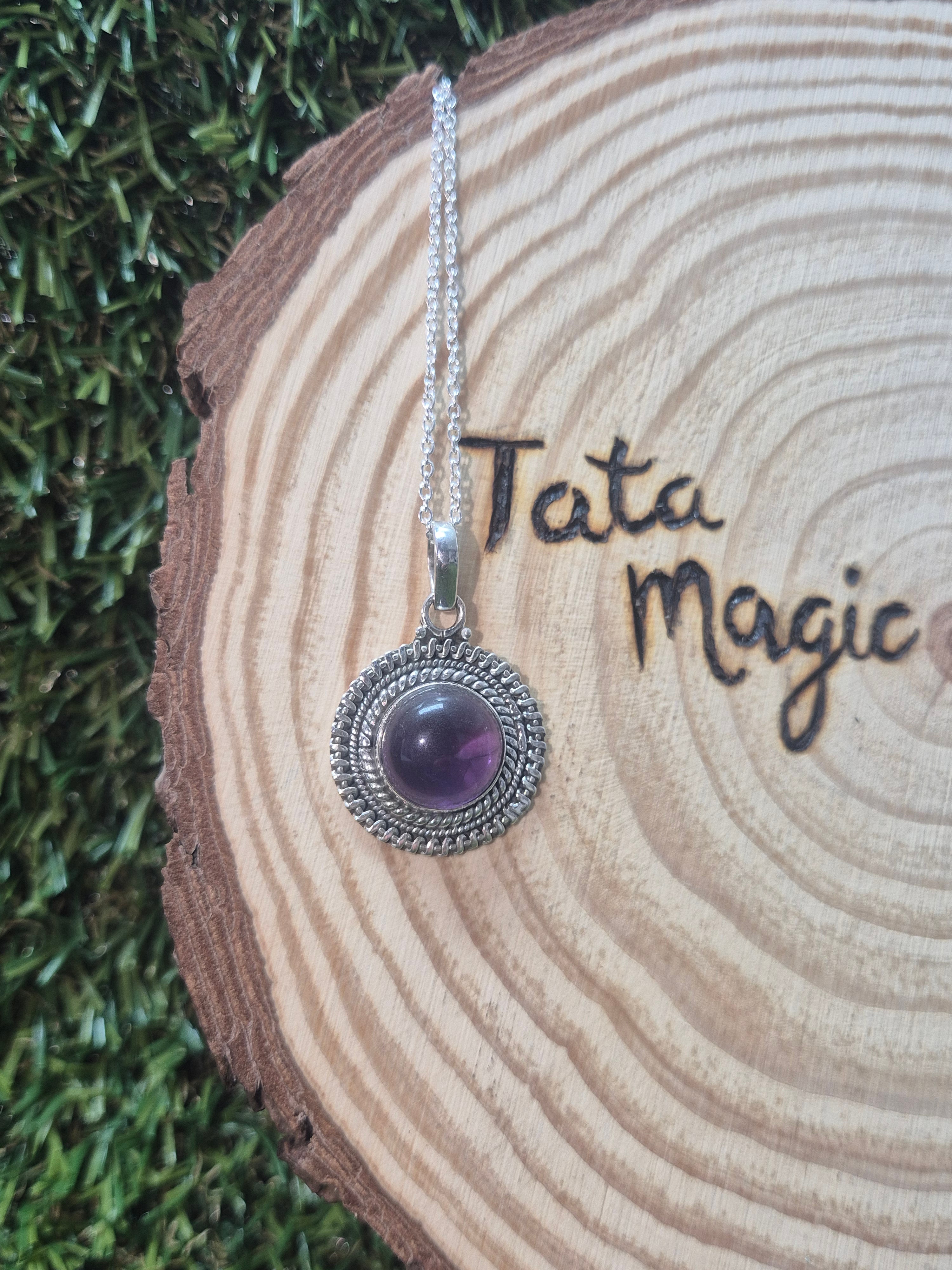 Colgante consagrado de Amatista en plata 925 con cadena- Intuición, calma y protección áurica