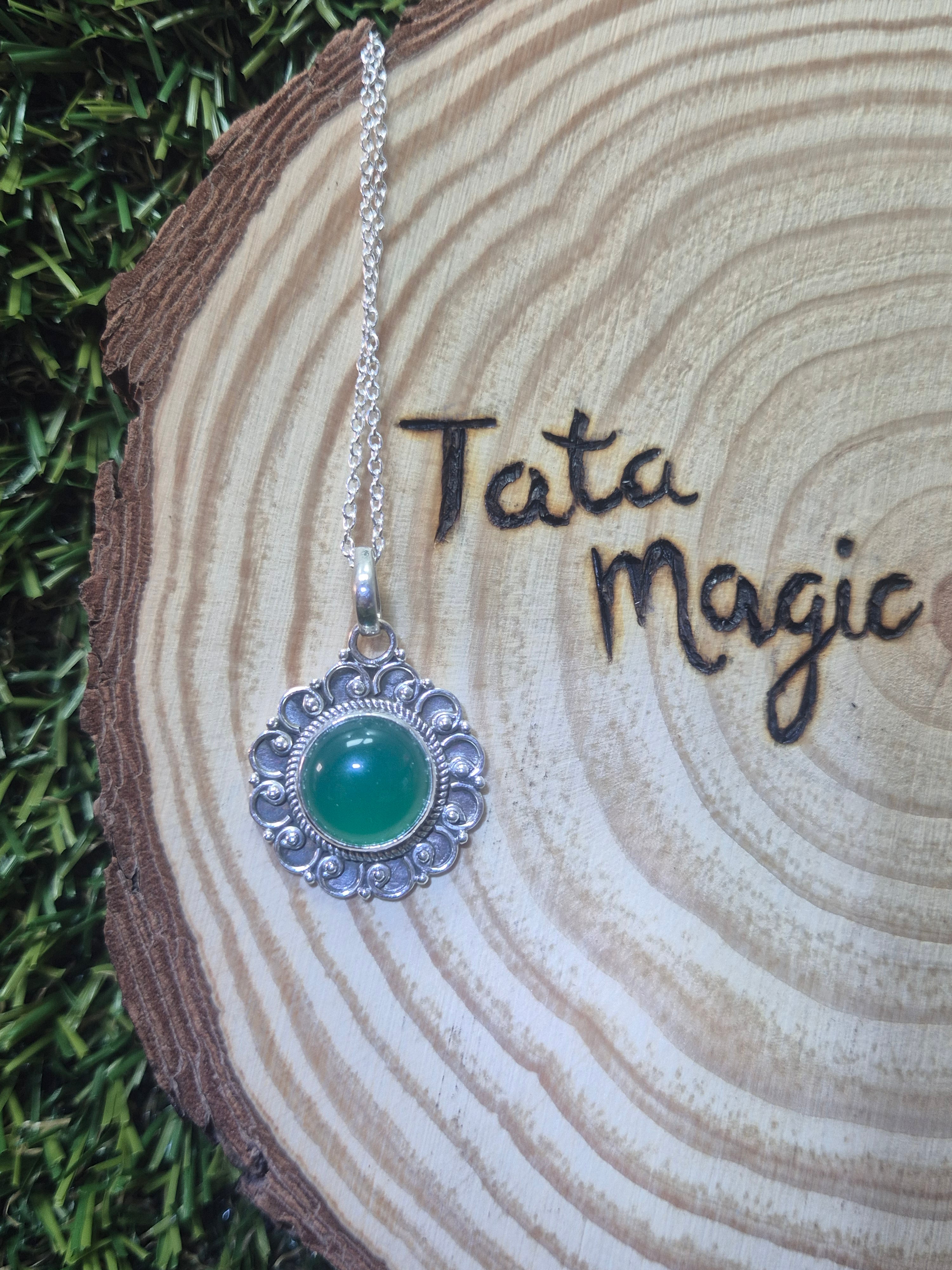Colgante consagrado de Aventurina Verde en plata 925 con Cadena -Abundancia, sanación y confianza en la vida