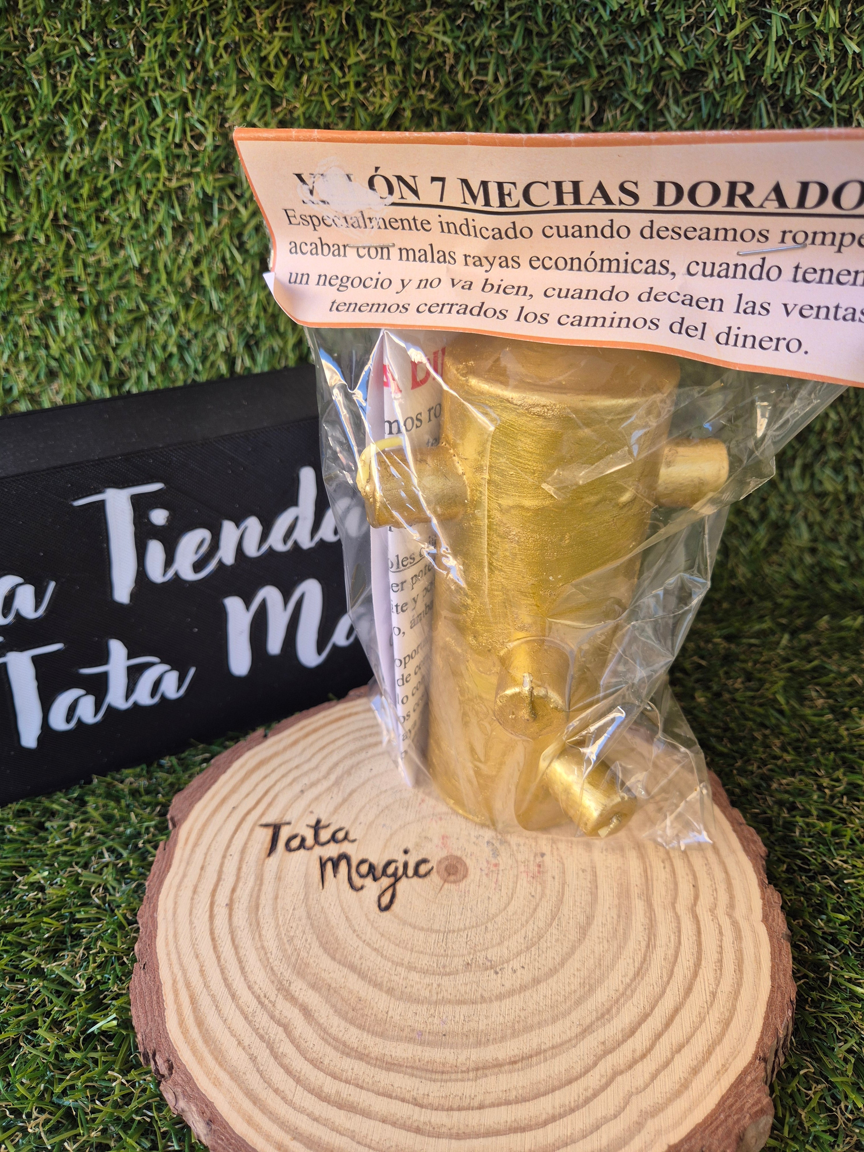Velón 7 Mechas Dorado de 7 Llaves- Prosperidad, Éxito y Apertura de Caminos