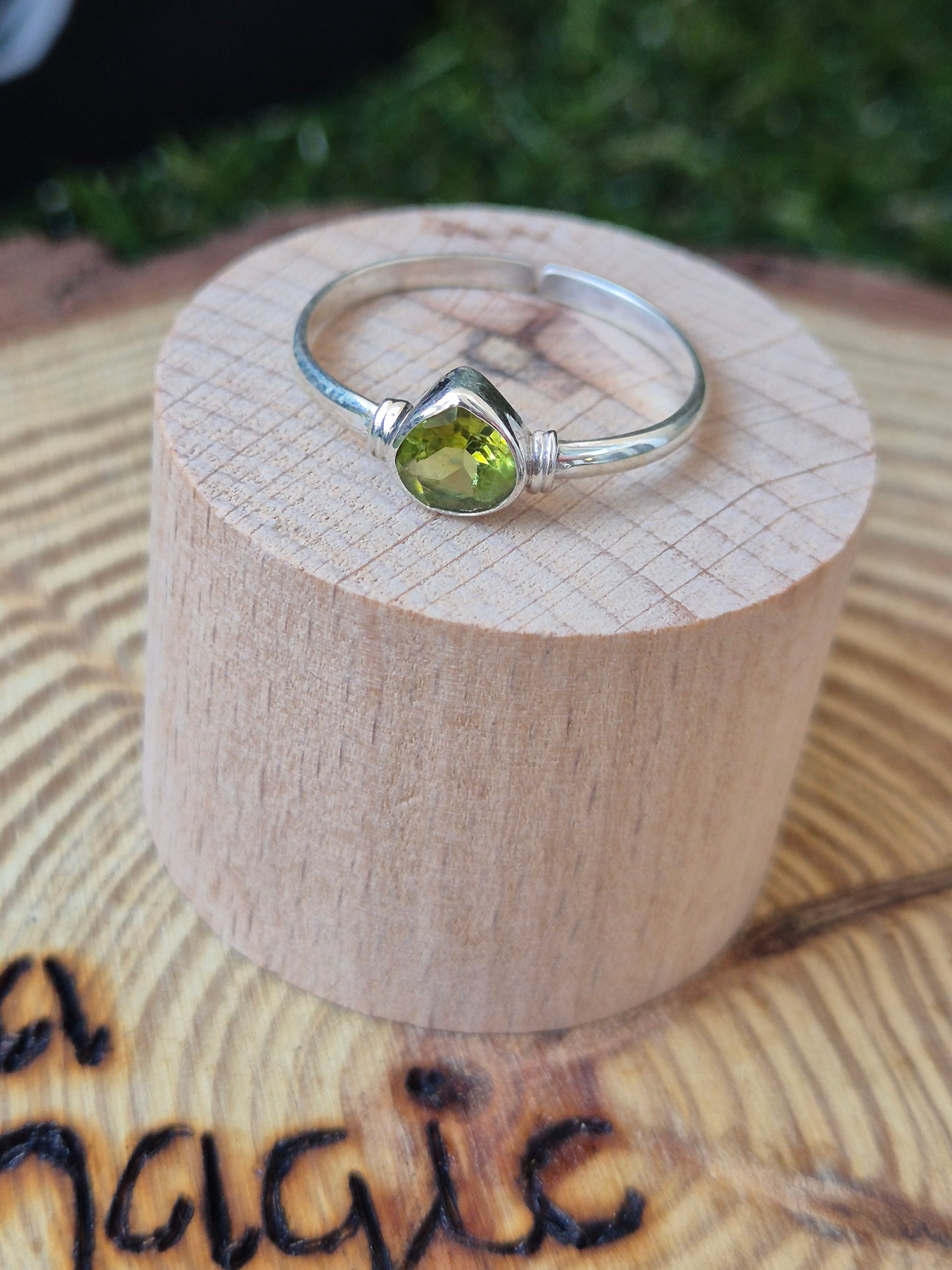 Anillo Olivino Ajustable Plata - Activación Cuántica para Cambiar el Rumbo Energético