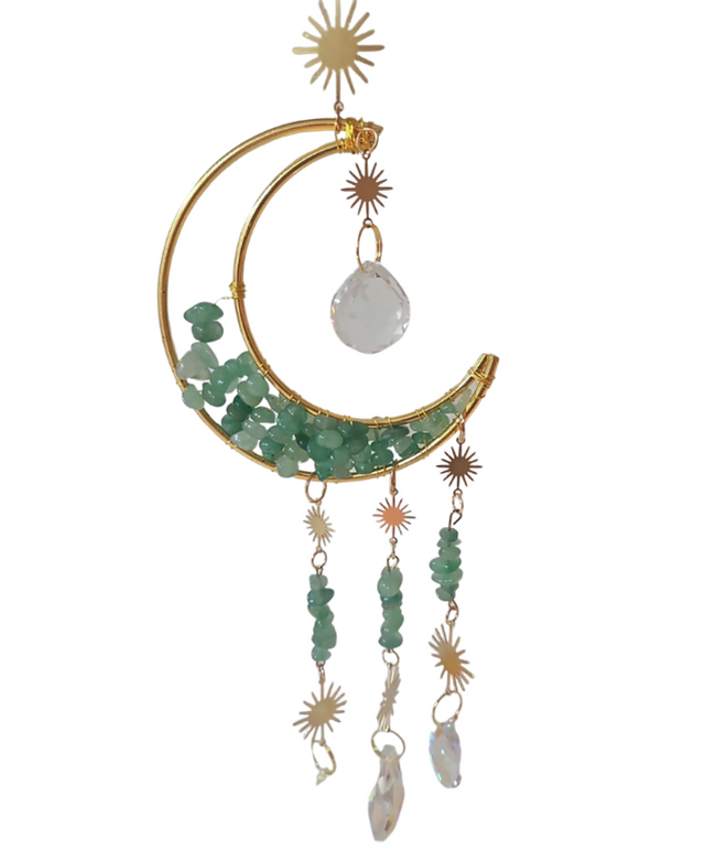 La luna simboliza la intuición, la calma y la conexión espiritual, mientras que los minerales aportan propiedades específicas: algunos protegen, otros atraen amor o abundancia. Este atrapasol ayuda a filtrar energías negativas, atraer buenas vibras y fortalecer tu intuición. Es perfecto para colocar en tu hogar y sentirte más equilibrada y protegida.