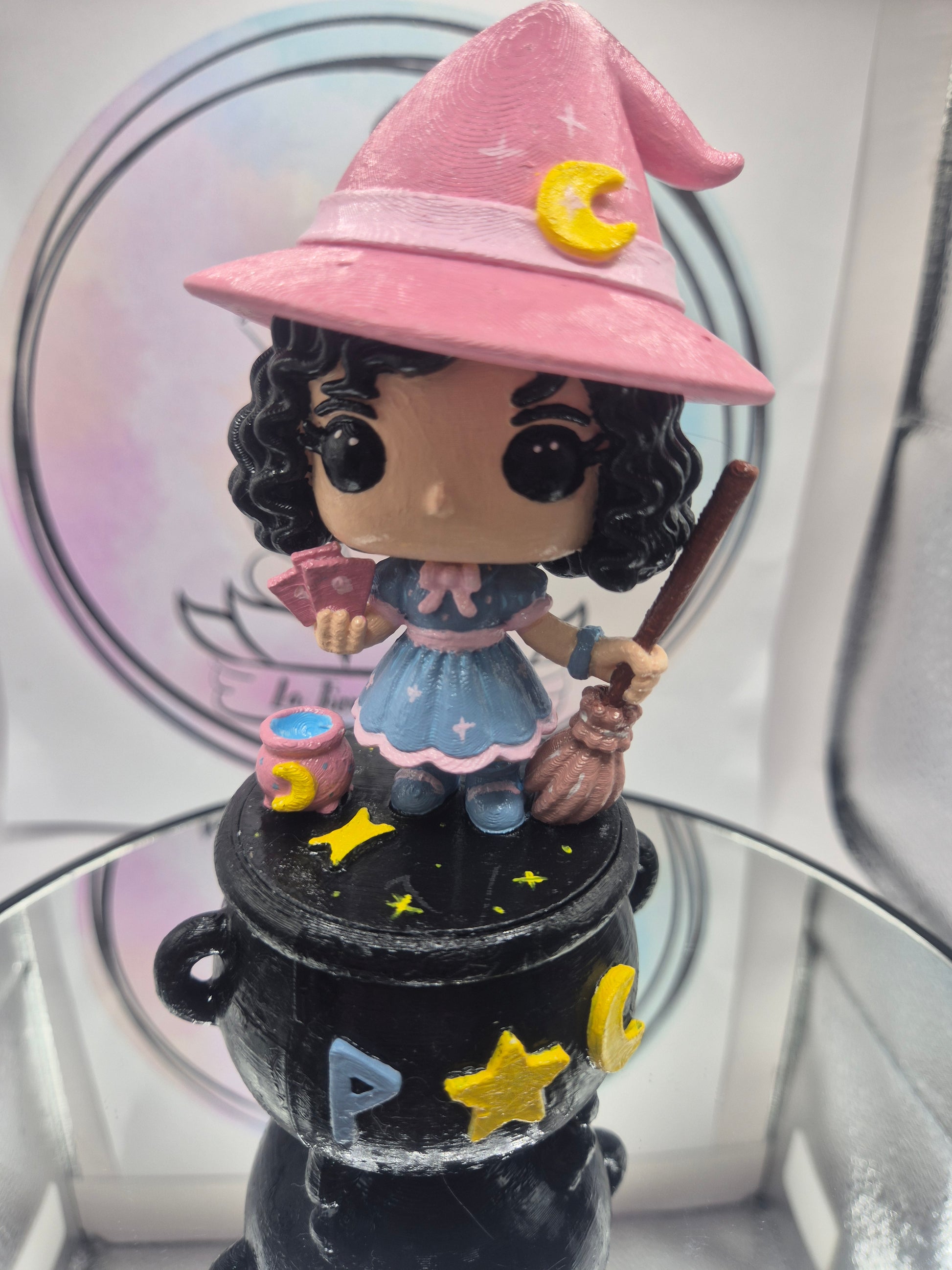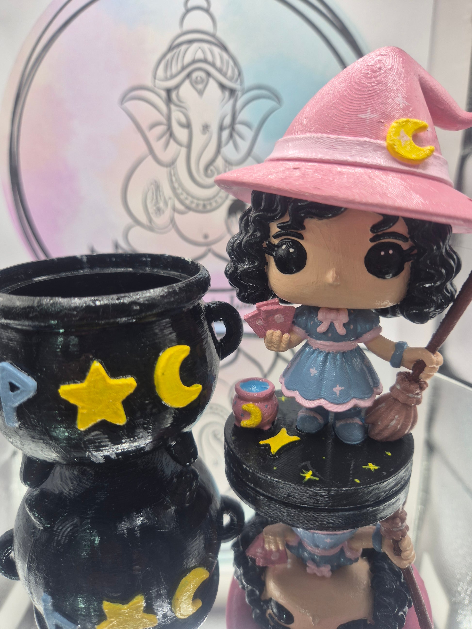 Brujita Tata con Caldero y puedes poner dentro del caldero, tus joyas, minerales o lo que desees.