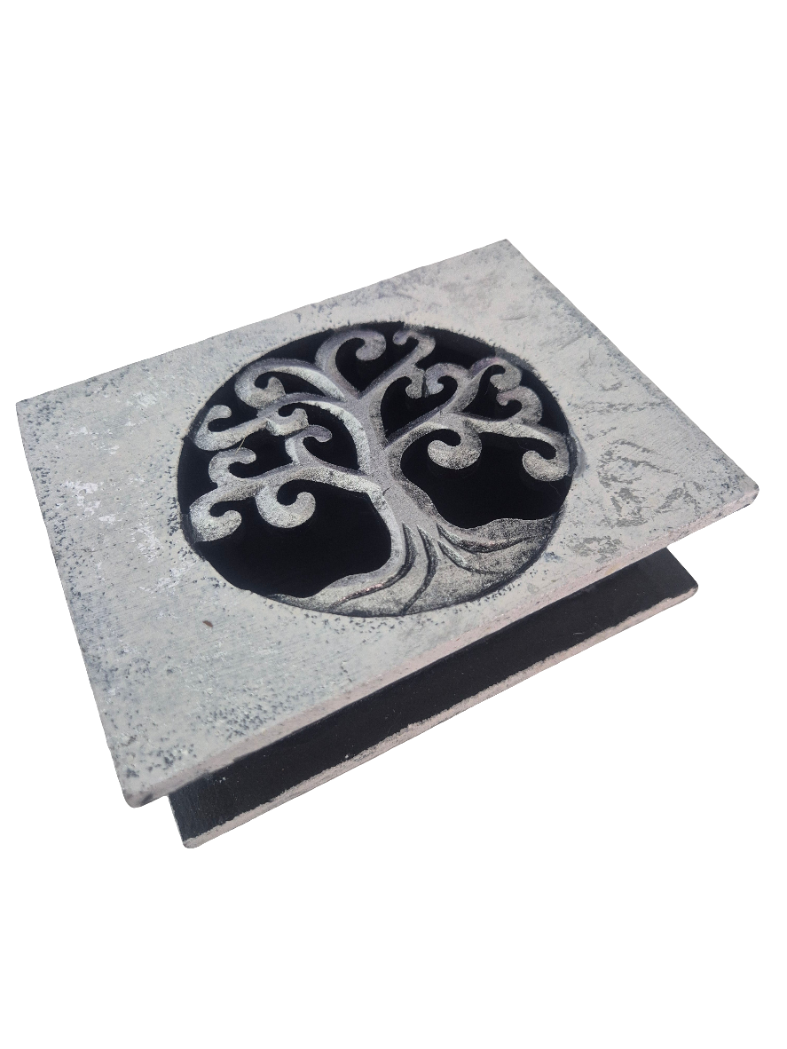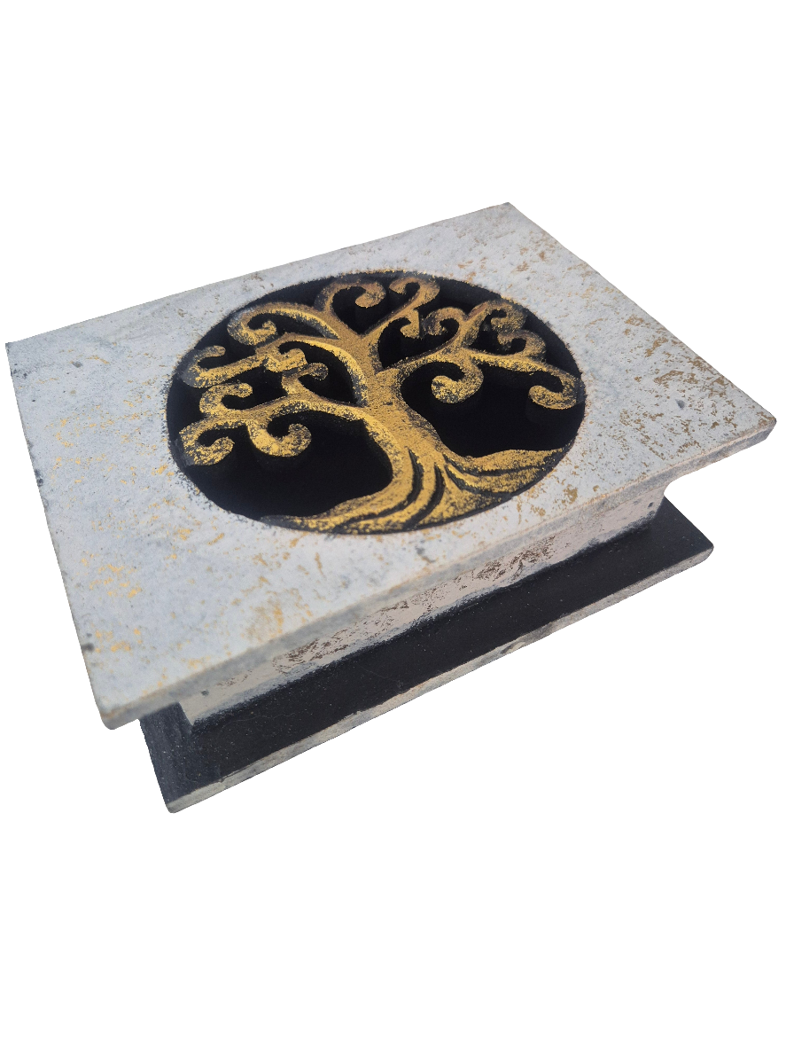 Caja Joyero Árbol de la vida , hecha de madera pintada y tallada a mano artesanal.