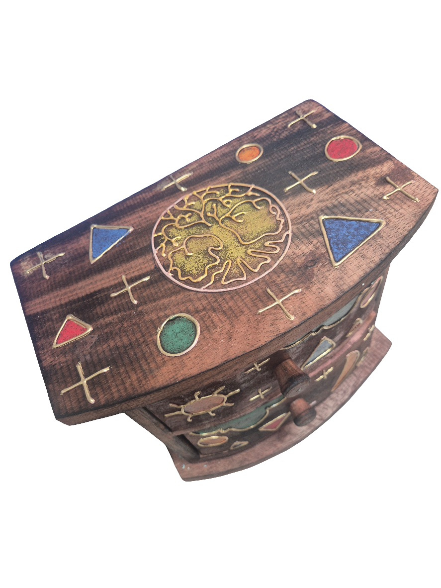 Las Cajoneras Esotéricas son mucho más que simples muebles: son cofres energéticos donde cada cajón guarda un propósito, un símbolo y una vibración. Diseñadas para organizar, proteger y potenciar tus herramientas mágicas, son el complemento perfecto para tu altar, espacio ritual o consulta espiritual.