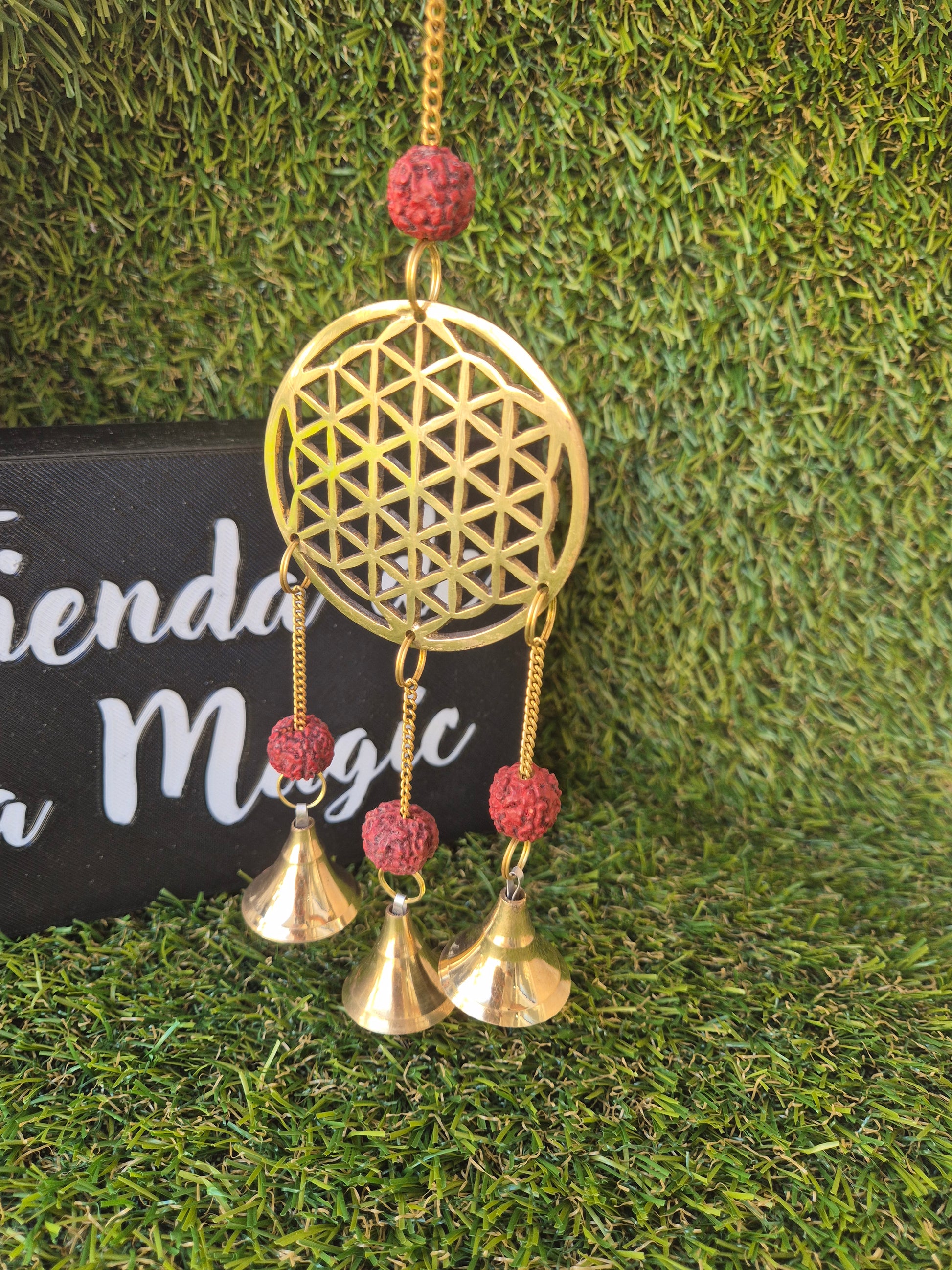 Carrillón de Viento Flor de la Vida con Rudraksha - Protección, Armonía y Energía Sagrada