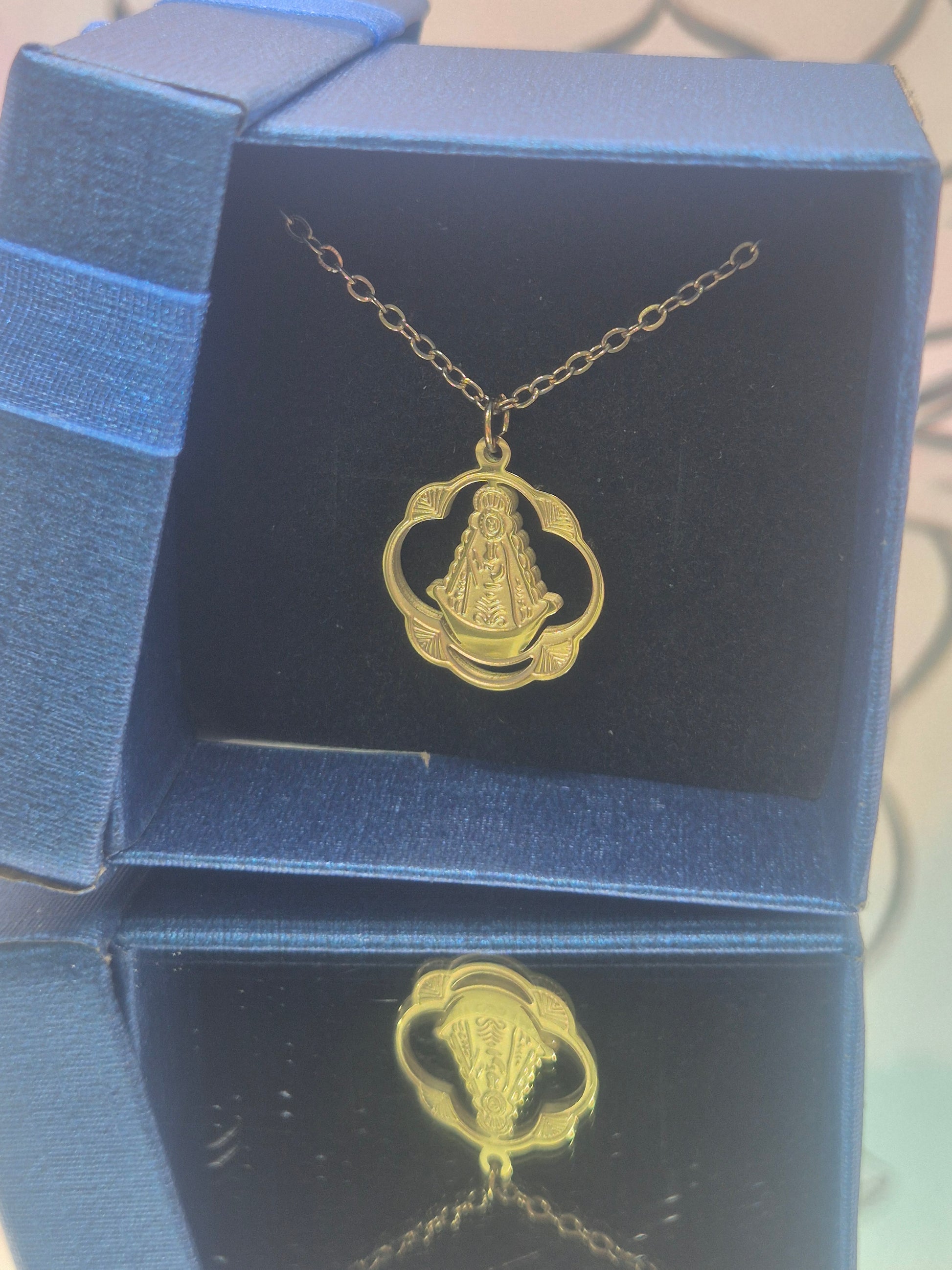 Este colgante de la virgen del Rocío brinda protección contra energias negativas e influencias no deseadas. Actúa como un escudo espiritual.