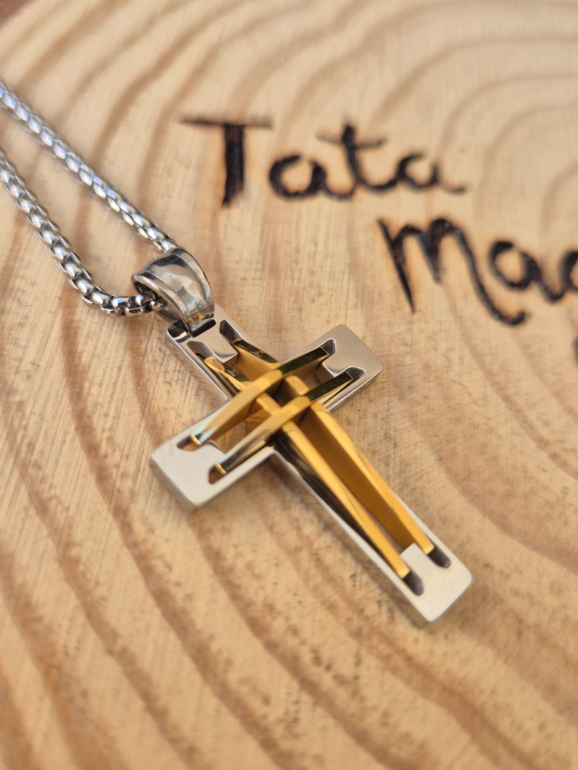 Colgante Cruz en Acero Plateado y Dorado Consagrada - Protección y Equilibrio Unisex