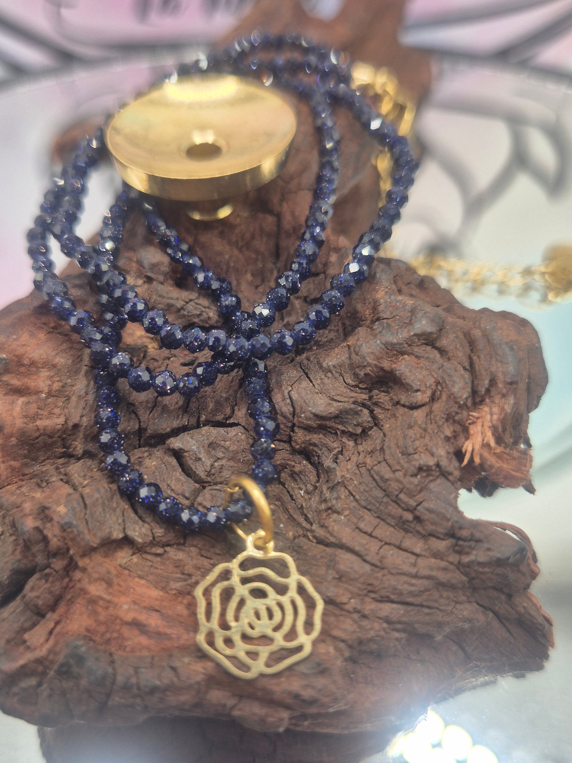 Este collar de Aventurina Azul te ayudara a calmar las emociones , promoviendo la paz interior y la tranquilidad.