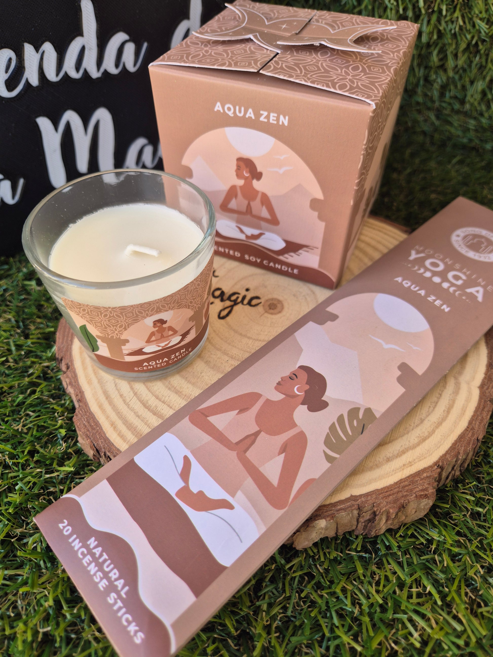 Pack Vela Soja + Incienso de Regalo Aqua Zen - Equilibrio y Armonía Song Of India