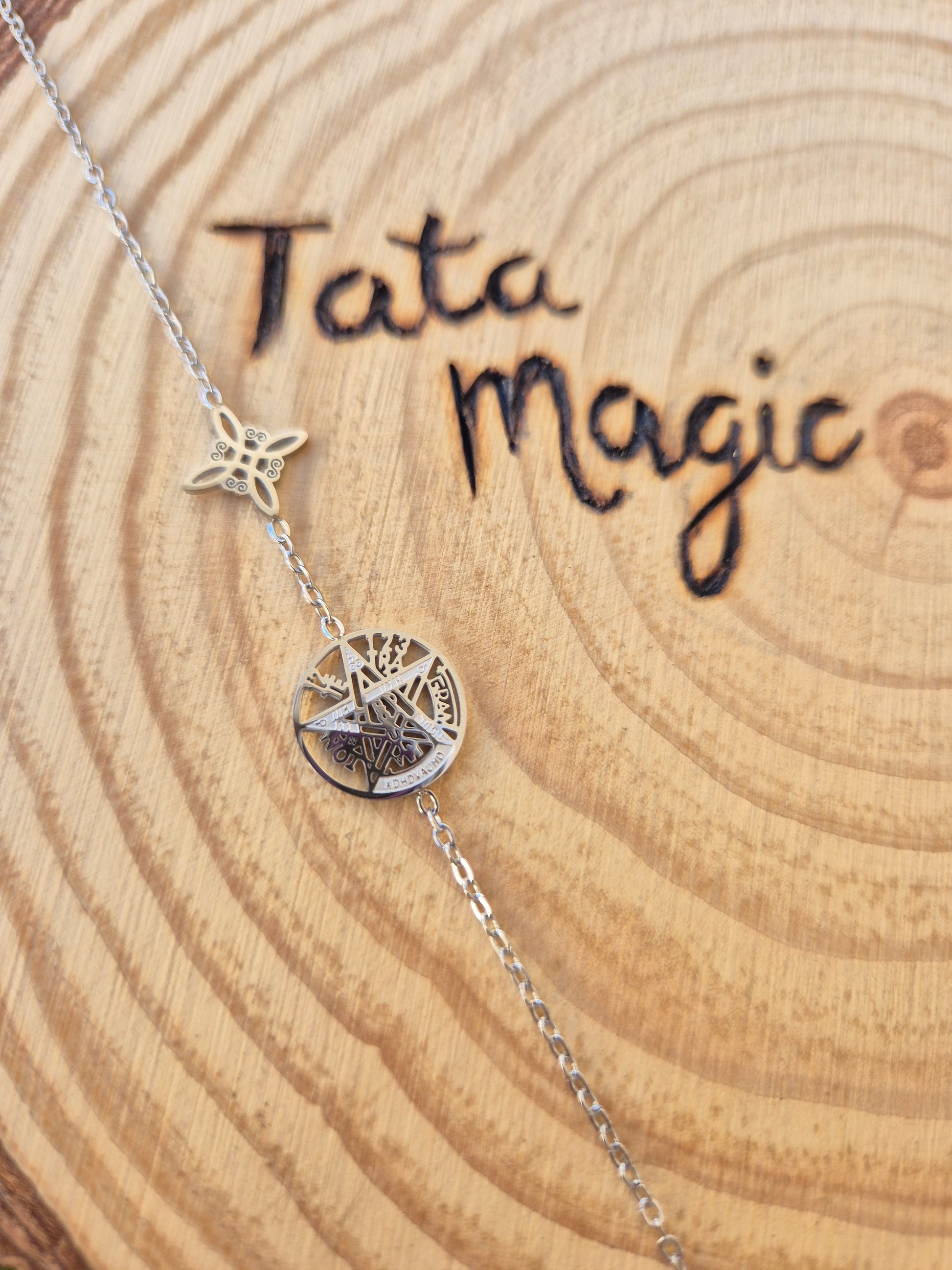La Pulsera Doble Protección Nudo de Bruja con Tetragrammaton en acero calado es una pieza de joyería esotérica y elegante, diseñada para quienes aman los amuletos cargados de significado.